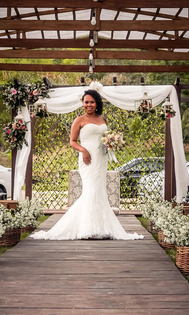 Nossa noiva Lucimar, optou por um vestido magnífico Internovias. Um modelo tomara que caia todo rendado que realçou suas as curvas, deixando-a ainda mais maravilhosa, amamos!