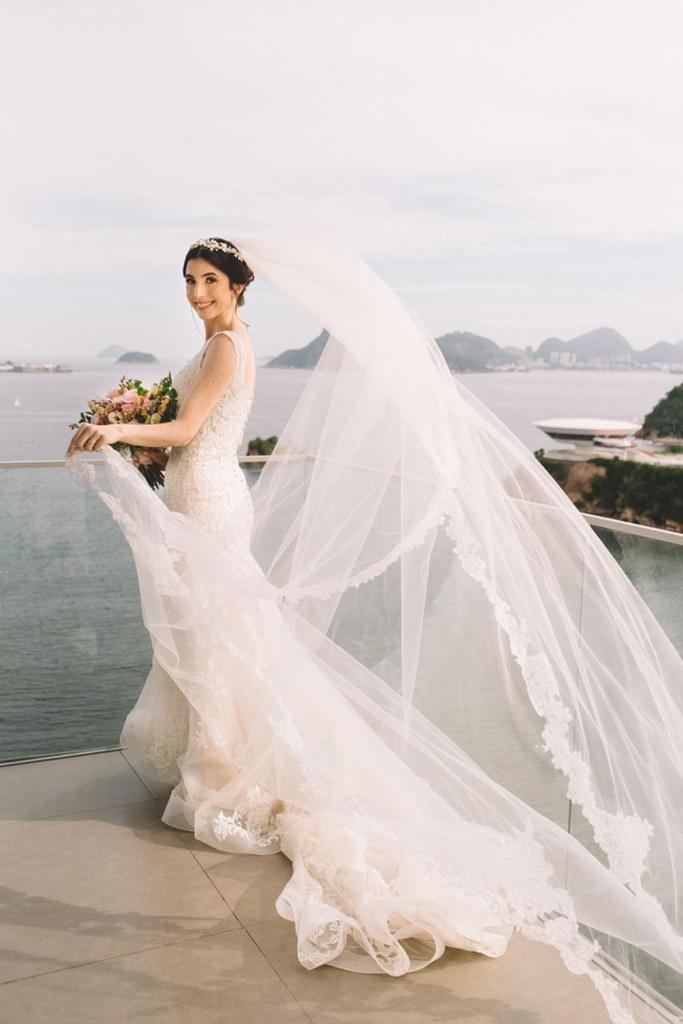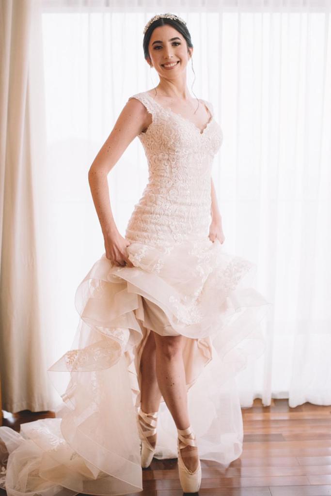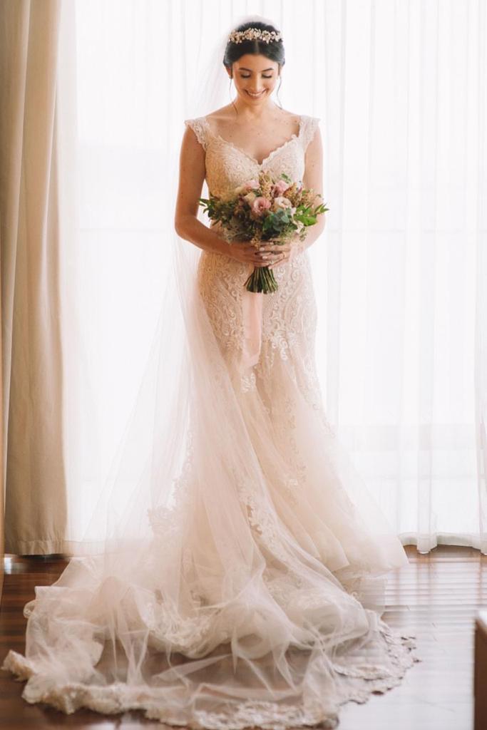 A Bruna se casou com um vestido perfeito, um modelo Internovias maravilhoso que realçou ainda mais suas curvas, com trabalho em renda diferenciado, trazendo delicadeza e romantismo. Ficamos apaixonadas pela foto de bailarina. Ela é uma verdadeira princesa!