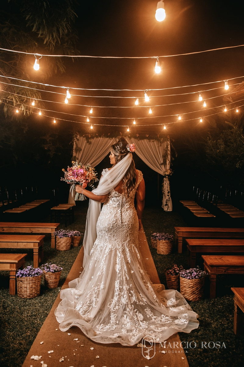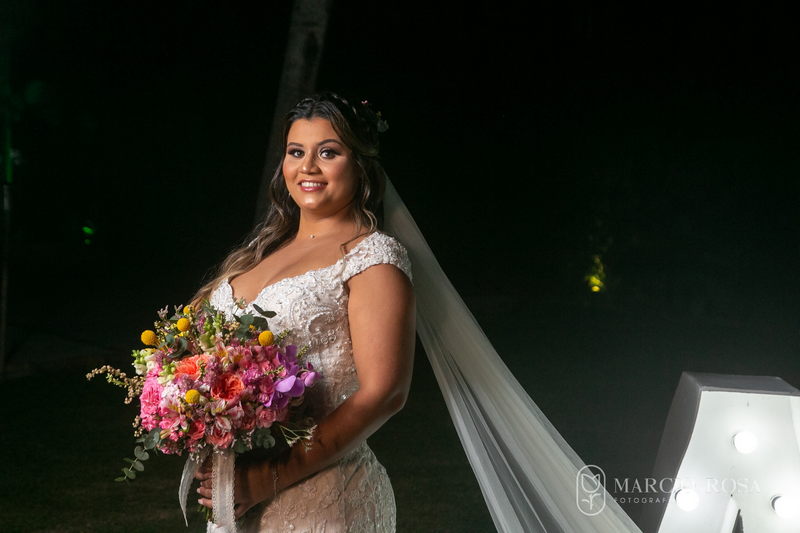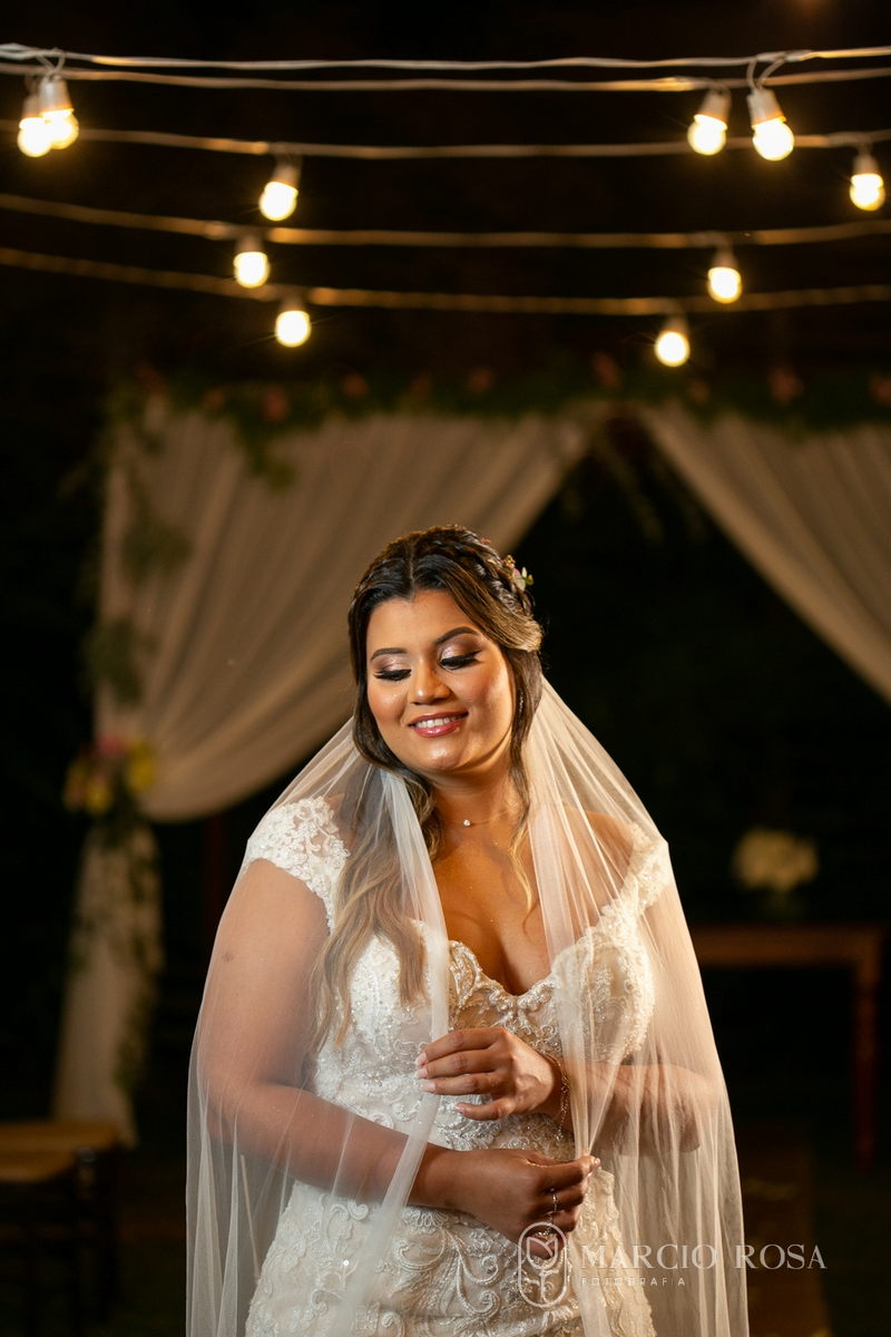 A Ana Carolina estava maravilhosa com seu vestido de noiva Internovias, um modelo estilo sereia todo rendado, simplesmente divino! Sua beleza encantou a todos na cerimônia, com muita simpatia.