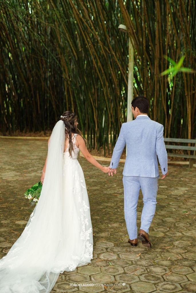 O casal optou por uma cerimônia ao ar livre, num lugar perfeito. Finalmente dando os passos em rumo à vida a dois, por muito tempo sonhada por eles e pelas pessoas que os rodeiam.