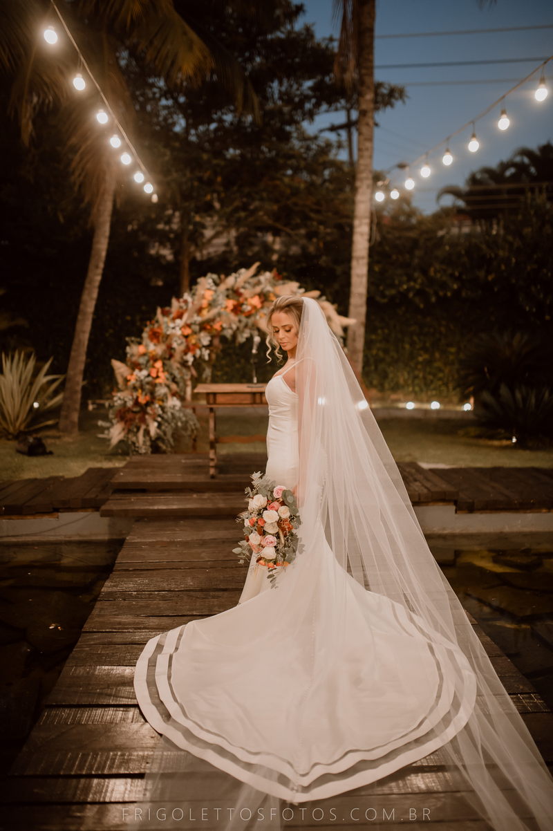Nossa noiva optou por um vestido de noiva Internovias com um caimento estilo sereia, minimalista e super delicado, um modelo super elegante que valorizou ainda mais a sua beleza!