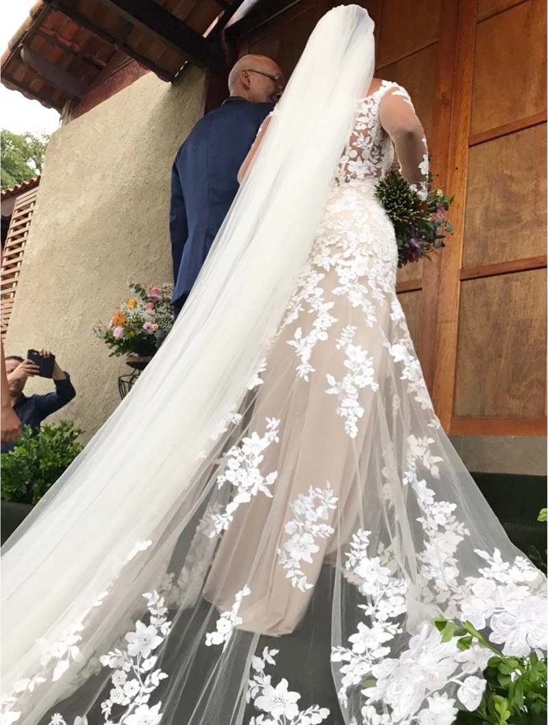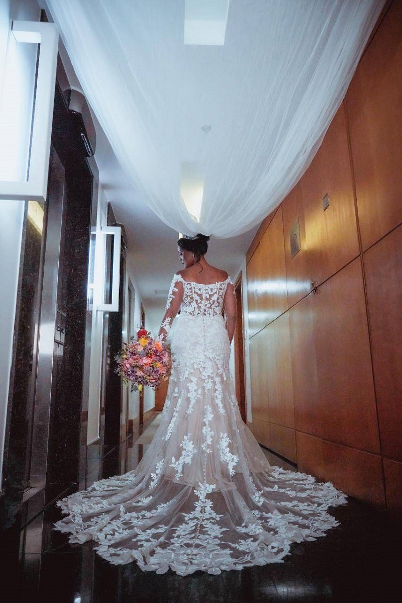 A escolha do vestido de noiva não poderia ser melhor, a noiva optou por um modelo Internovias super elegante e romântico, com mangas longas e rendas exclusivas. Impossível não se encantar com a simpatia e a beleza dessa mulher.
