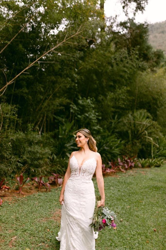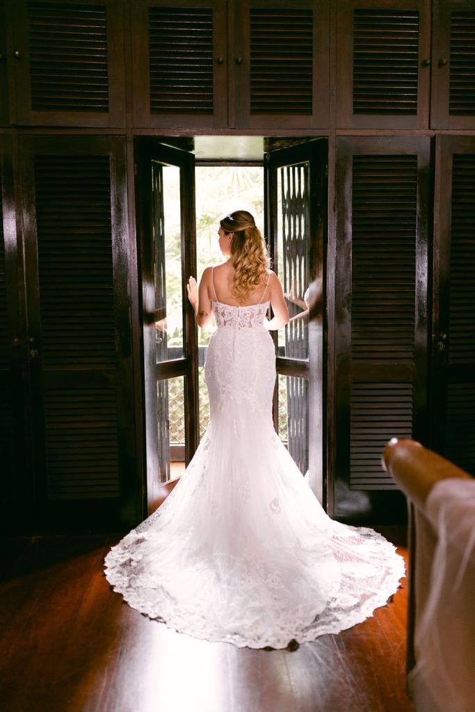 A Paulinha estava deslumbrante com o seu vestido de noiva Internovias estilo sereia, um modelo repleto de rendas delicadas e decote frontal divino, que destacou ainda mais a sua beleza. A maquiagem e o penteado perfeito da @necessaire_fashion tornou o look ainda mais único e inesquecível, amamos tudo!