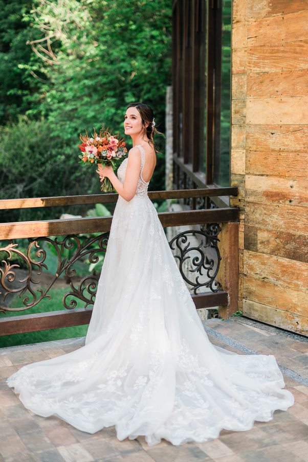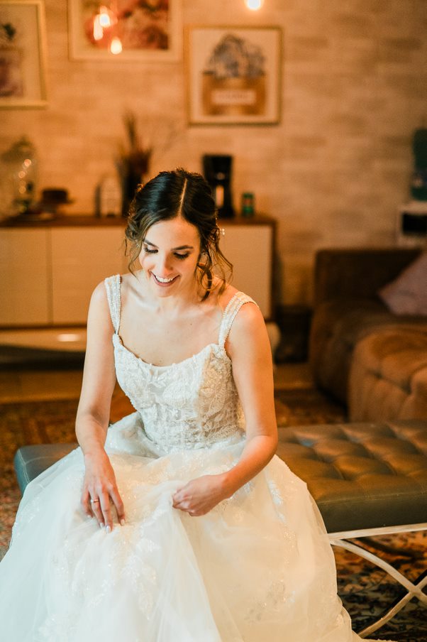 A nossa Noiva Renata encantou a todos com seu vestido de noiva Internovias. Um modelo, inspirado em contos de fadas modernos, leve e romântico. Os detalhes em renda enriqueceram o tecido com sofisticação, enquanto o decote nas costas adicionou um toque único ao look. A maquiagem, pela talentosa Dani Lima, capturou a essência da noiva, cada traço foi pensado para realçar a sua beleza natural, complementando perfeitamente seu estilo.