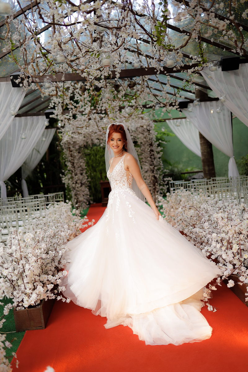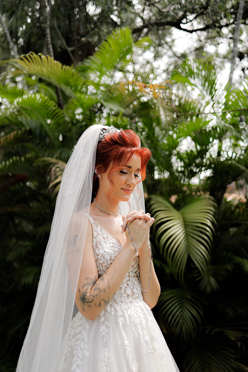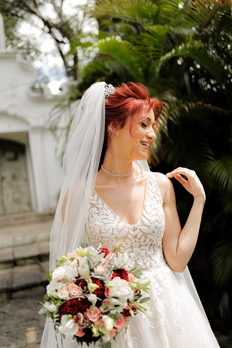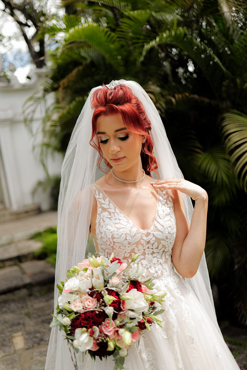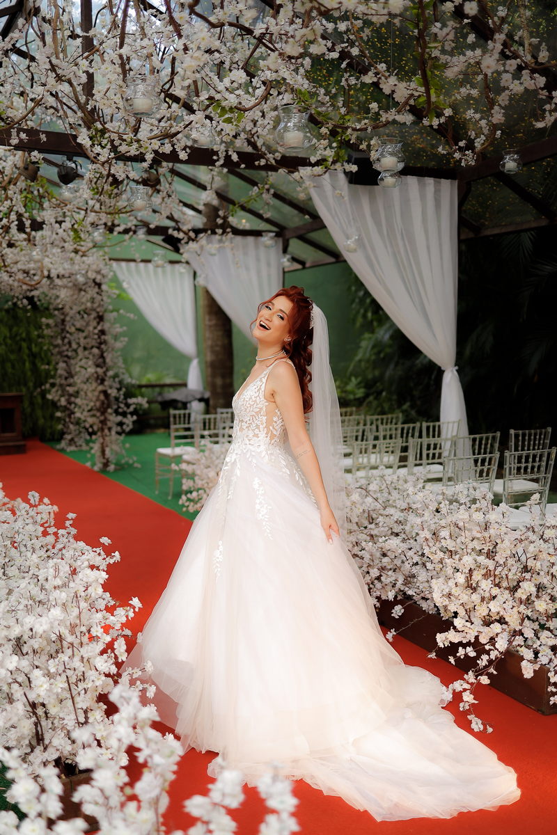 Quando falamos de casamento, o vestido da noiva é um dos grandes protagonistas. A Rayssa escolheu um modelo que combinou perfeitamente com o cenário romântico. Com uma renda belíssima, o vestido estilo princesa realçou a sua beleza natural, trazendo delicadeza e sofisticação na medida certa. Para completar o visual impecável da noiva, o @atelierbrunaguimaraes cuidou da maquiagem e do penteado, ressaltando sua beleza de forma sutil e elegante, resultando em uma noiva deslumbrante e radiante.