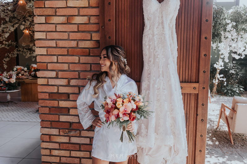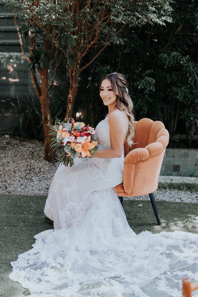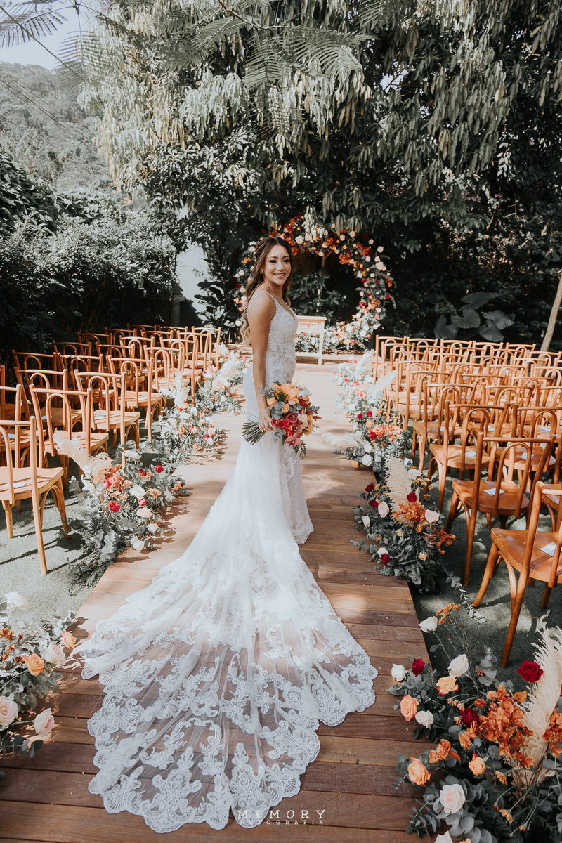 A Bruna, deslumbrou a todos com seu vestido de noiva Internovias estilo sereia, todo rendado, e uma cauda simplesmente maravilhosa. Seu sorriso irradiava felicidade enquanto caminhava pelo corredor adornado com flores, rumo ao seu futuro. A maquiagem, obra da @rafafercondinnymakeup, realçou sua beleza natural de maneira divina, complementando perfeitamente o seu look.