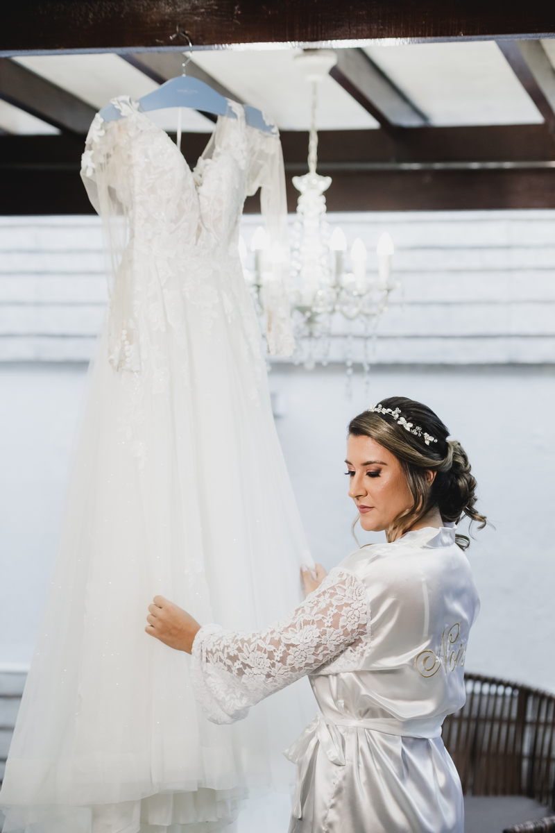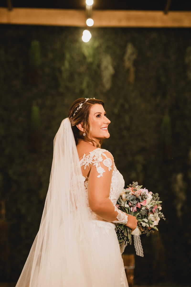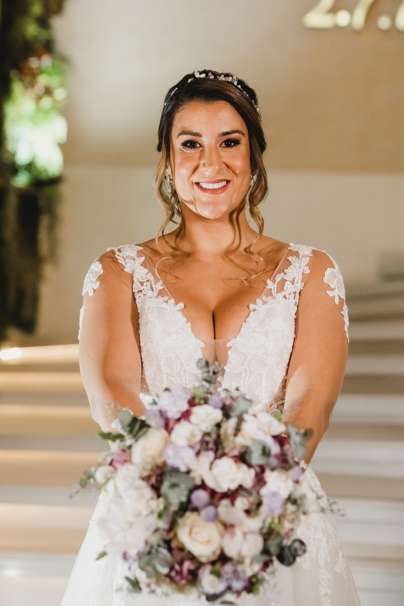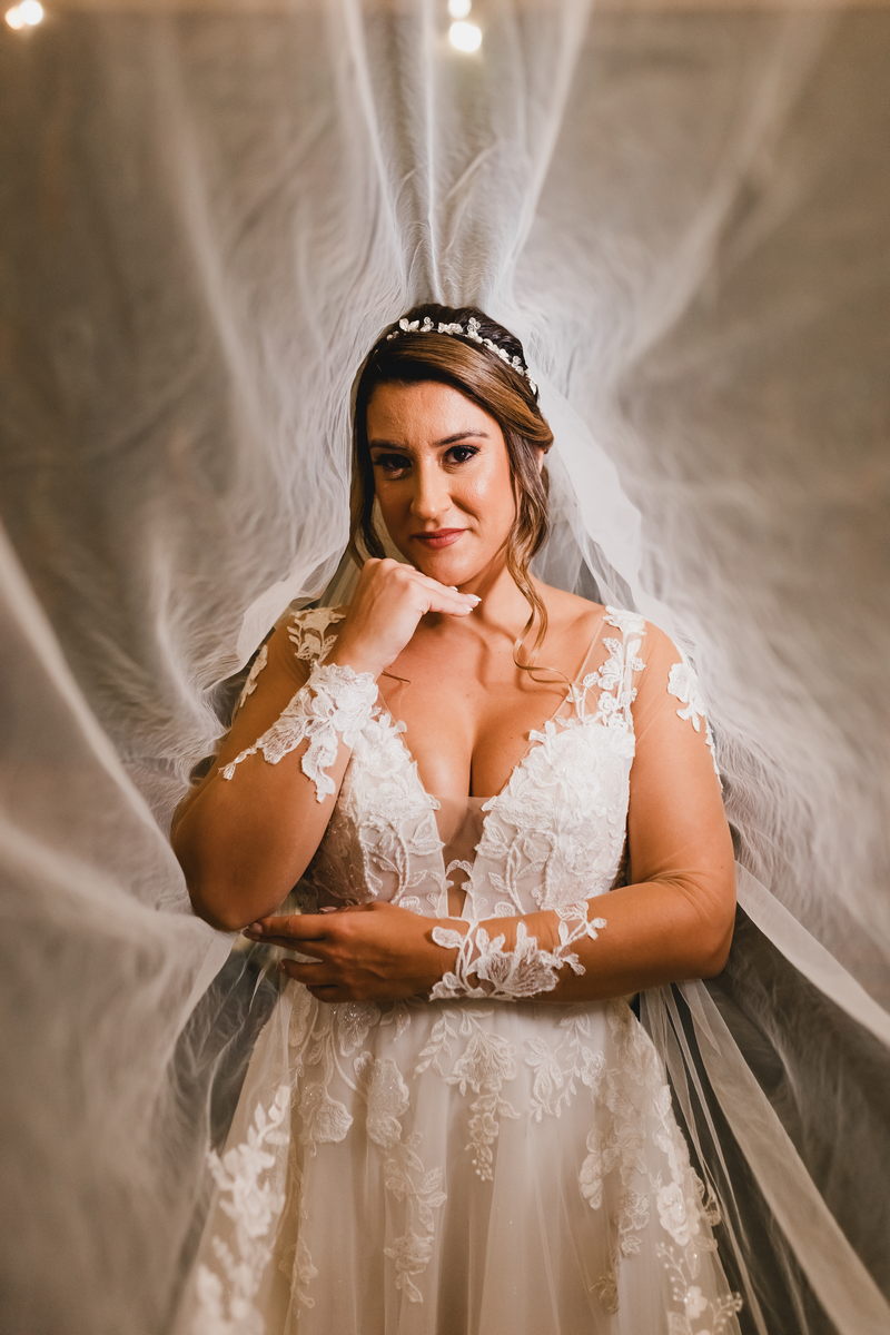 A Letícia escolheu um vestido de noiva Internovias que parecia ter saído de um sonho. O modelo estilo princesa encantador se destacou com o seu delicado trabalho em renda, um decote frontal perfeito e sua saia leve. Os lindos detalhes em transparência adicionaram um toque de modernidade e sensualidade, tornando o look divino. A maquiagem, realizada pela talentosa @acarolinaas_makeup, realçou a sua beleza natural de forma sutil e elegante.