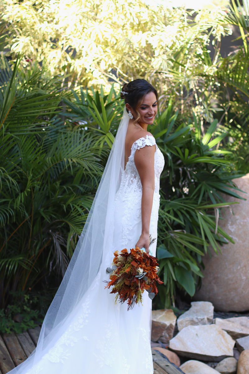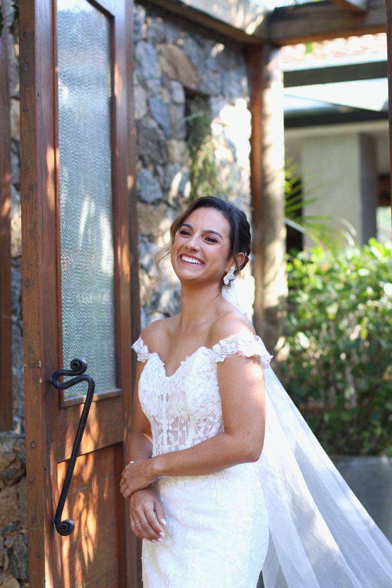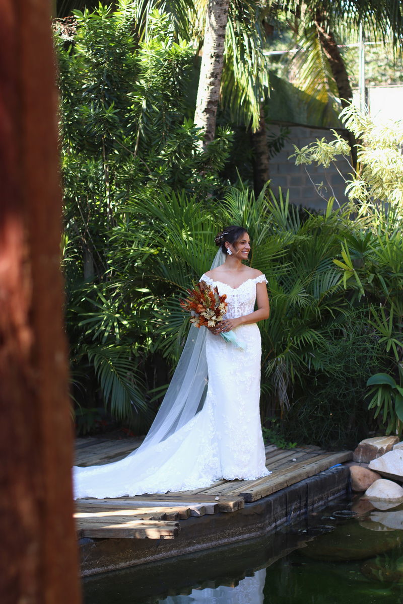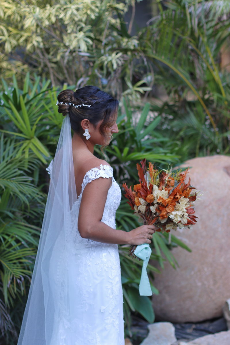 A Luana estava perfeita em seu vestido de noiva da Internovias. O modelo estilo sereia, todo rendado, exalava romantismo e sofisticação. Os detalhes em transparência no busto e a renda maravilhosa fizeram deste vestido uma escolha impecável para o grande dia. A beleza da noiva foi realçada pela talentosa @marcelamarquesg, que optou por um look que harmonizava perfeitamente com o estilo do casamento. Com uma pegada leve, quente e um toque boho chic, a maquiagem e o penteado da noiva complementaram seu vestido de forma sublime, destacando a sua beleza natural. Amamos cada detalhe!