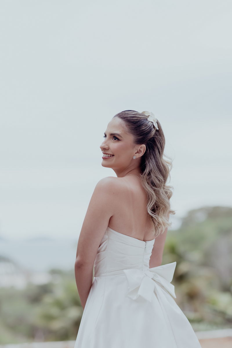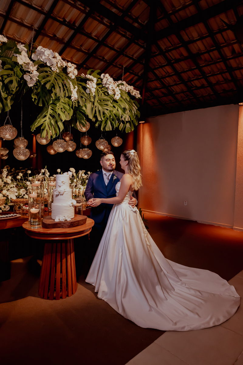 A beleza natural da noiva foi realçada com maestria pela @nathaliaamorimpro, que criou uma maquiagem suave e luminosa, destacando o brilho nos olhos da noiva e seu sorriso cativante. A cerimônia e a recepção foram orquestradas com perfeição pela @jacque.ribeirocerimonial, assegurando que cada momento fosse memorável e transcorresse sem contratempos.
