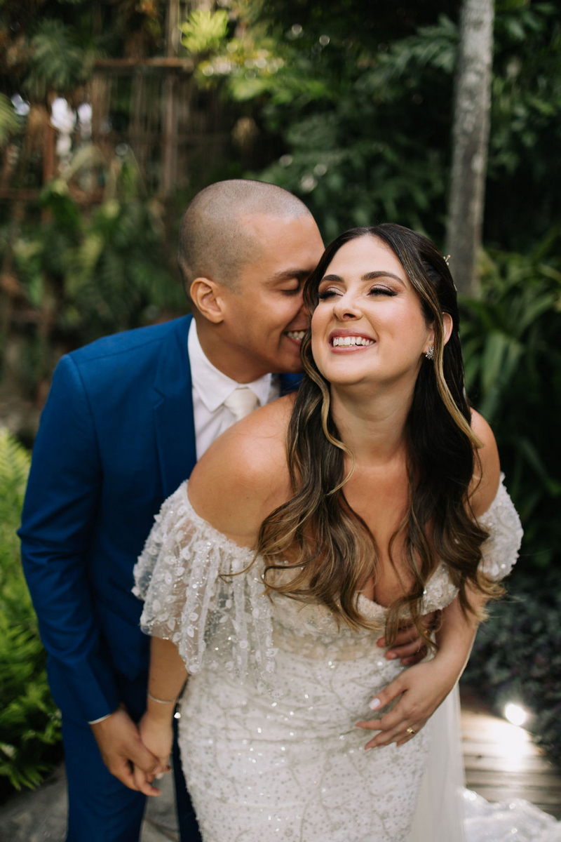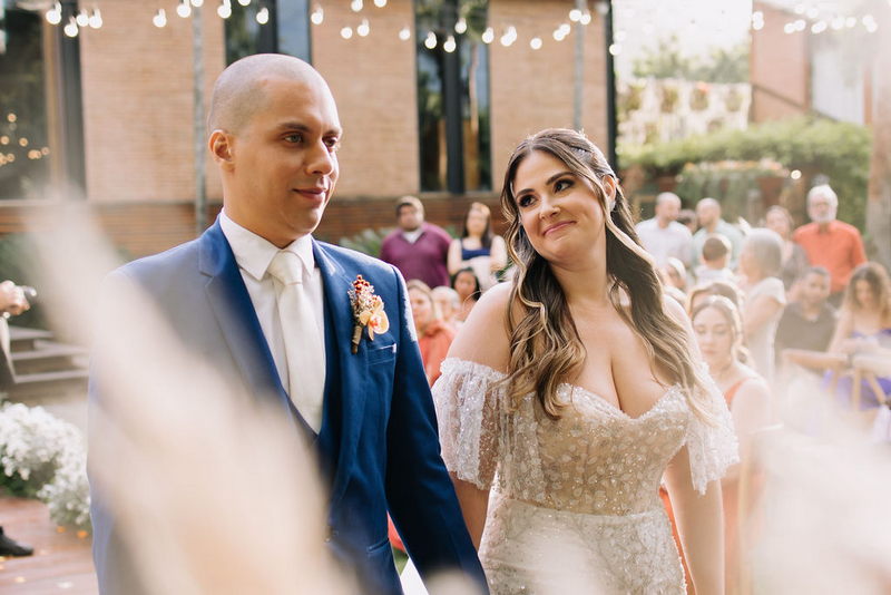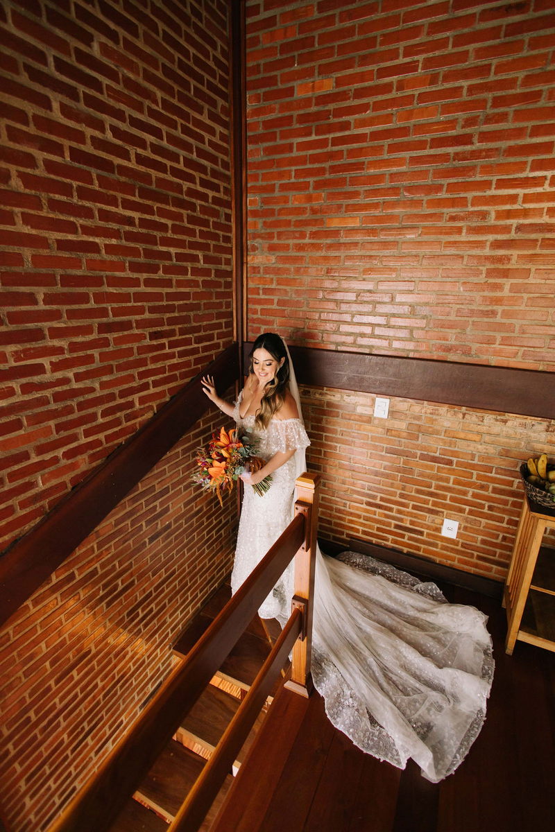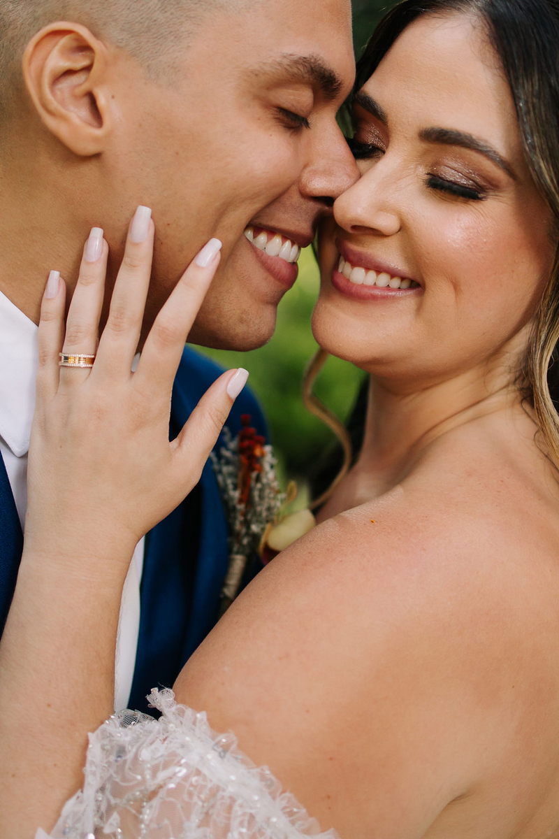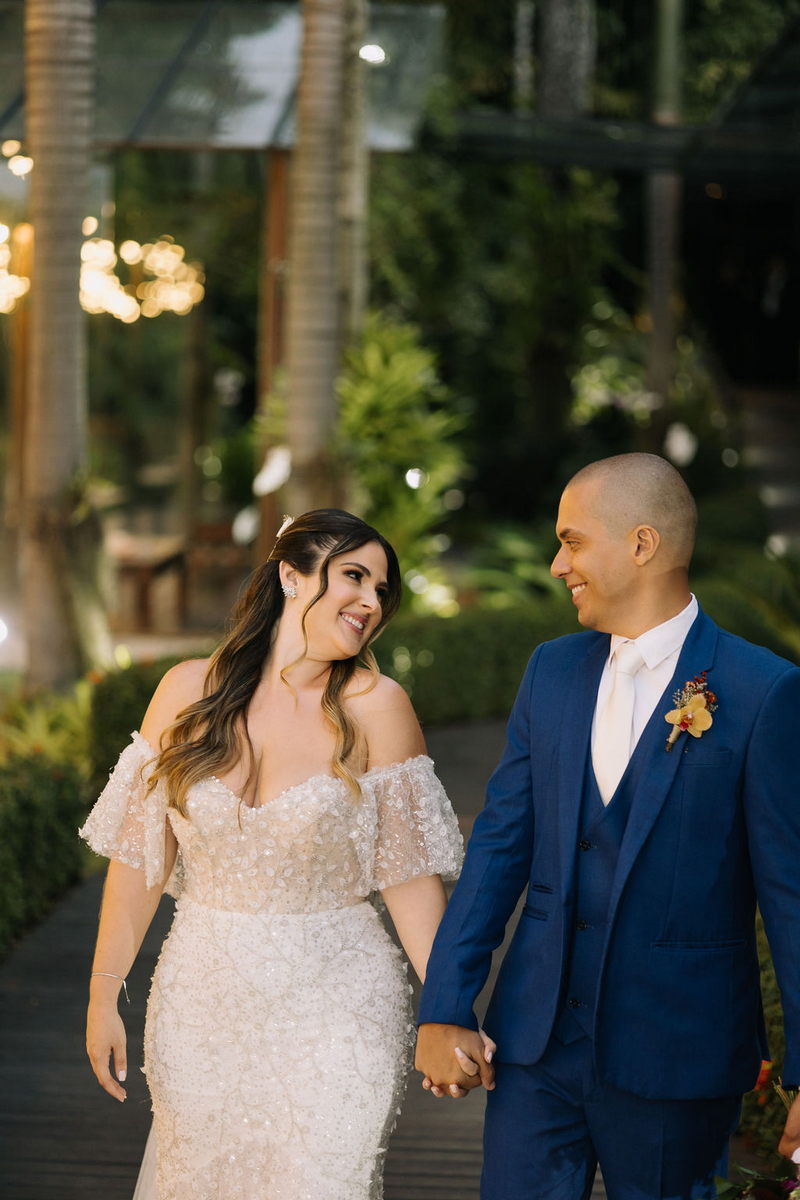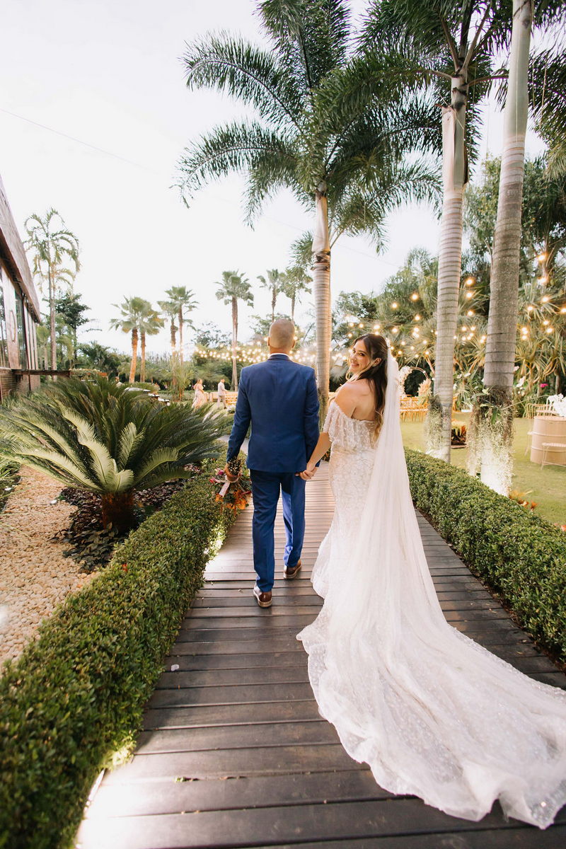 Karine estava deslumbrante em seu vestido de noiva Internovias, que combinou perfeitamente com o ambiente bucólico e elegante. O modelo tinha um corte sereia que destacou suas curvas de maneira elegante, e era todo trabalhado em renda, adicionando um toque romântico e delicado. As mangas, também em renda, acrescentaram um charme especial ao visual. A beleza da noiva foi realçada pelo talento da maquiadora @tatiiribeiro, que optou por um look suave e natural, destacando ainda mais o brilho da felicidade em seu rosto.