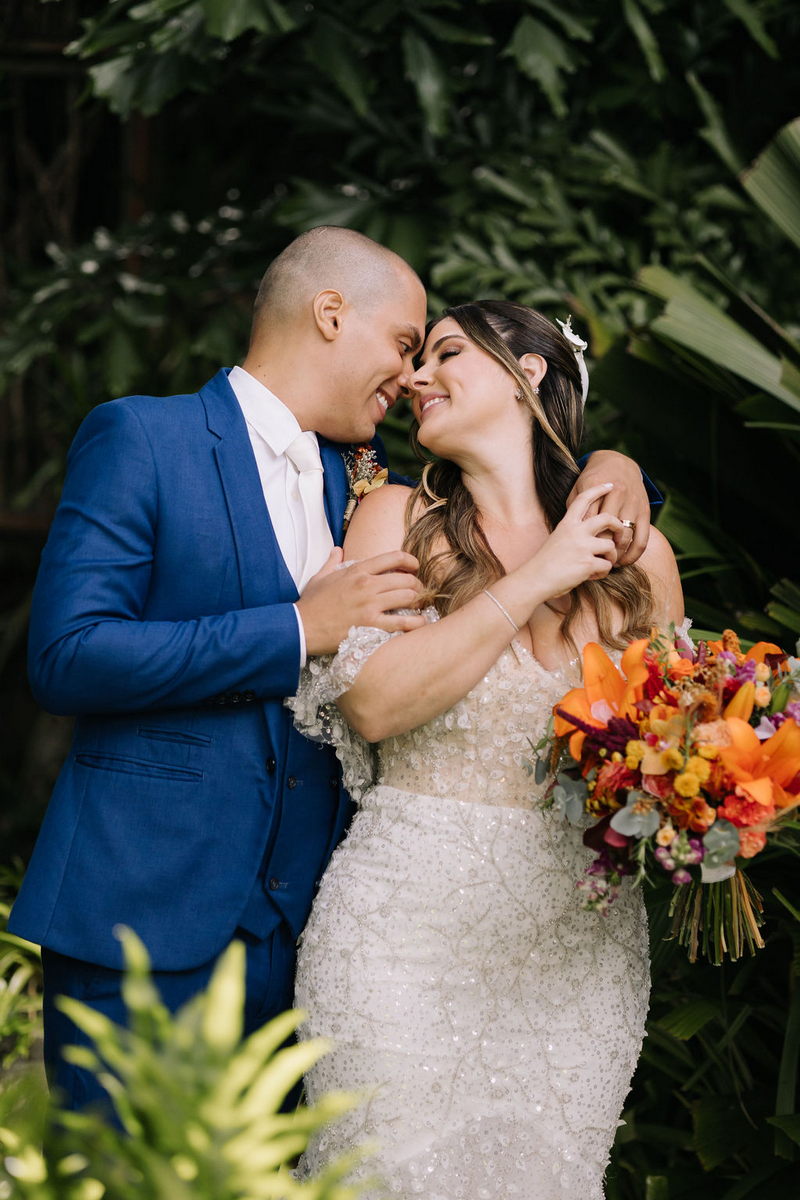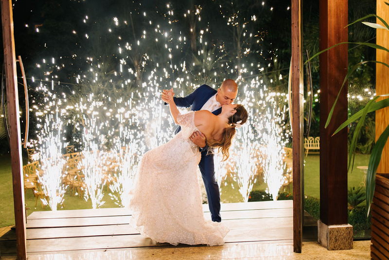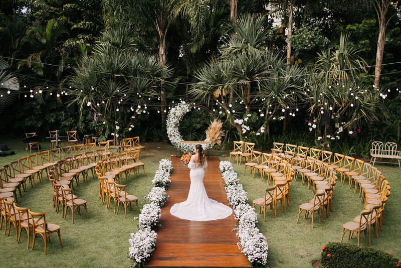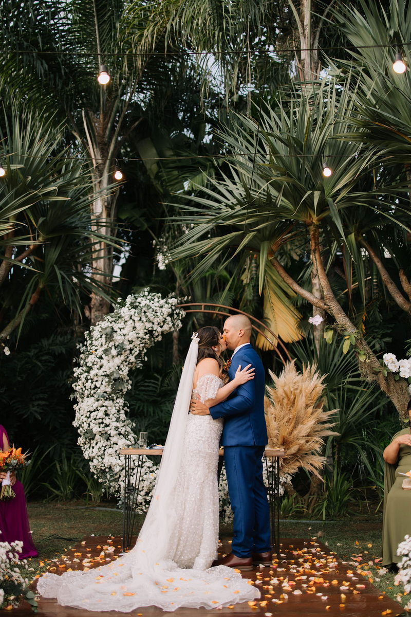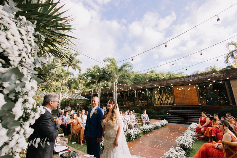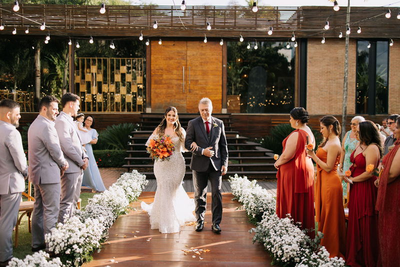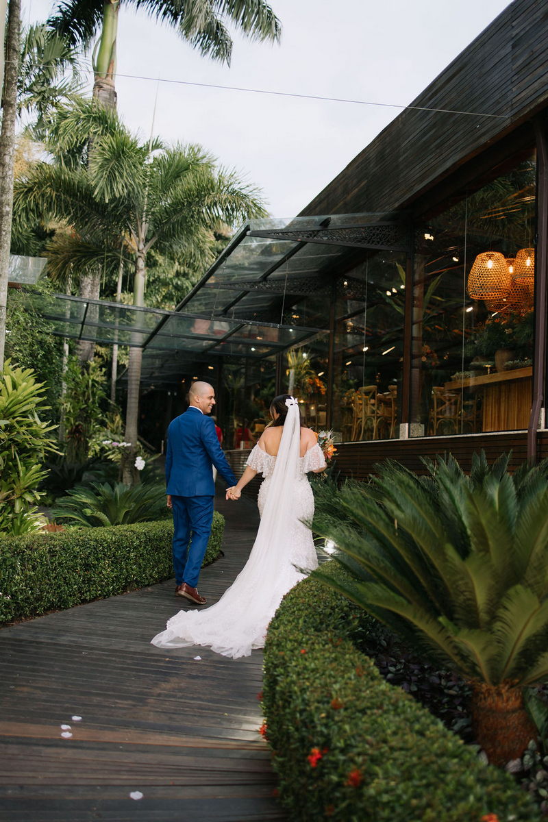 Karine estava deslumbrante em seu vestido de noiva Internovias, que combinou perfeitamente com o ambiente bucólico e elegante. O modelo tinha um corte sereia que destacou suas curvas de maneira elegante, e era todo trabalhado em renda, adicionando um toque romântico e delicado. As mangas, também em renda, acrescentaram um charme especial ao visual. A beleza da noiva foi realçada pelo talento da maquiadora @tatiiribeiro, que optou por um look suave e natural, destacando ainda mais o brilho da felicidade em seu rosto.