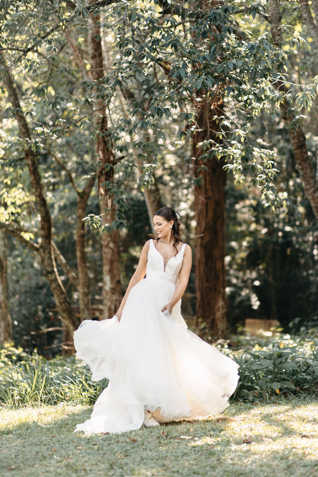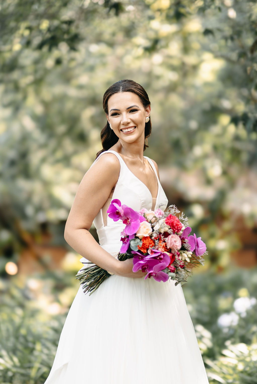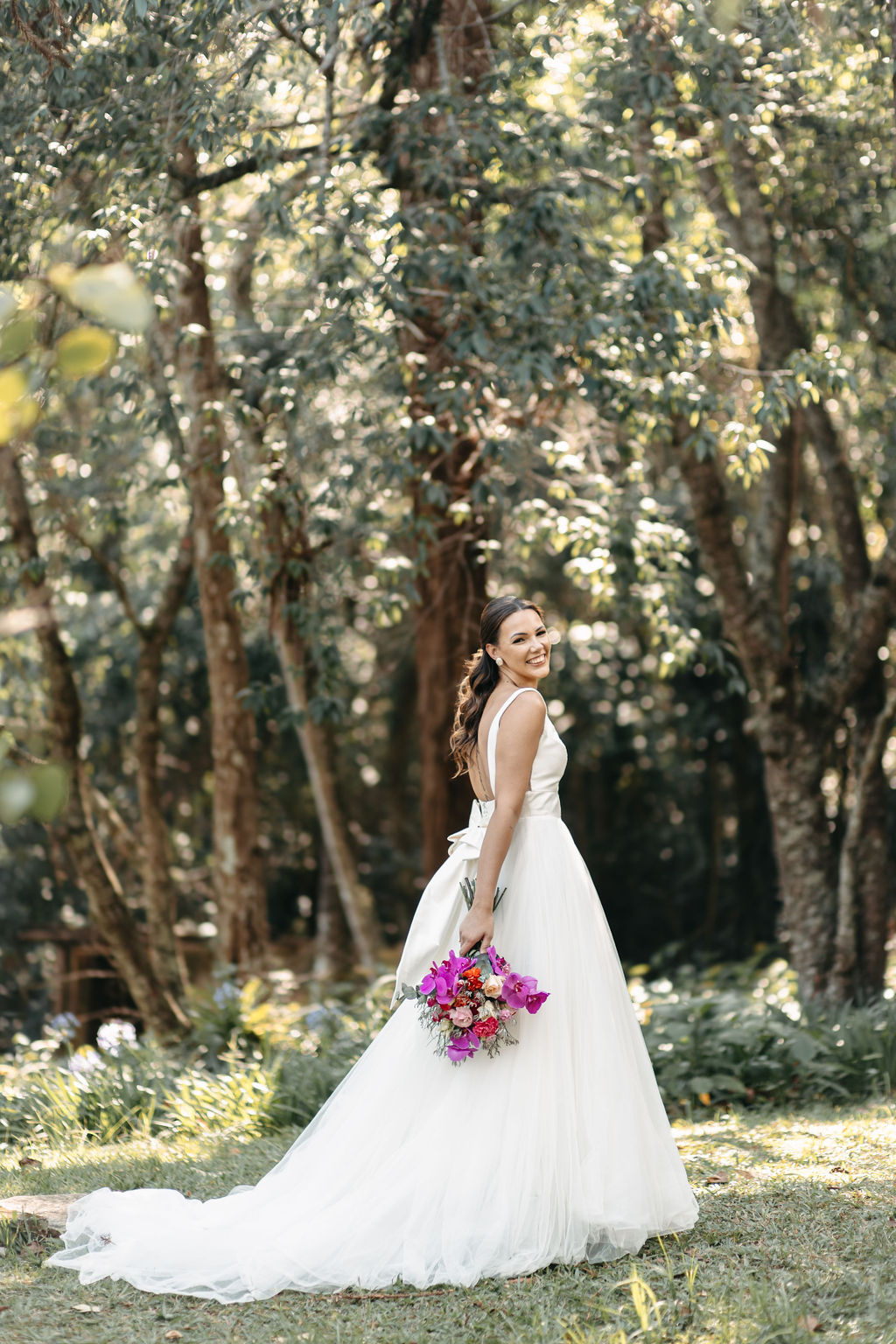 Vanessa estava deslumbrante com seu vestido de noiva Internovias. Ela optou por um modelo estilo princesa, com um lindo decote frontal e detalhes em transparência nas laterais, um vestido sofisticado e ao mesmo tempo delicado. O detalhe do laço grande na parte de trás adicionou um toque romântico ao look, complementando perfeitamente a peça. A beleza da noiva foi realçada pela talentosa @jani.levandowski, que escolheu um penteado semi-preso com ondas suaves e maquiagem suave, criando um look harmonioso e sofisticado.