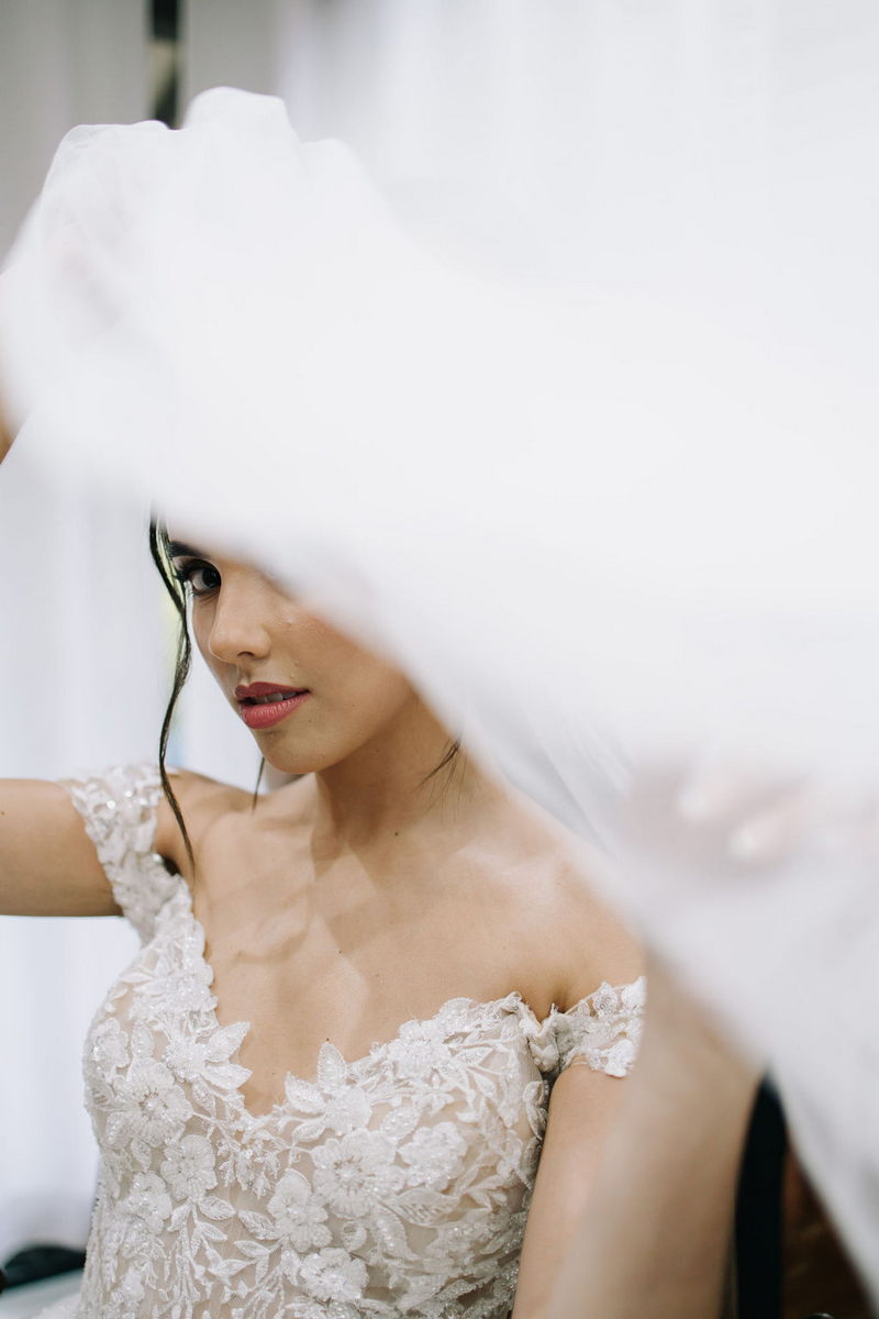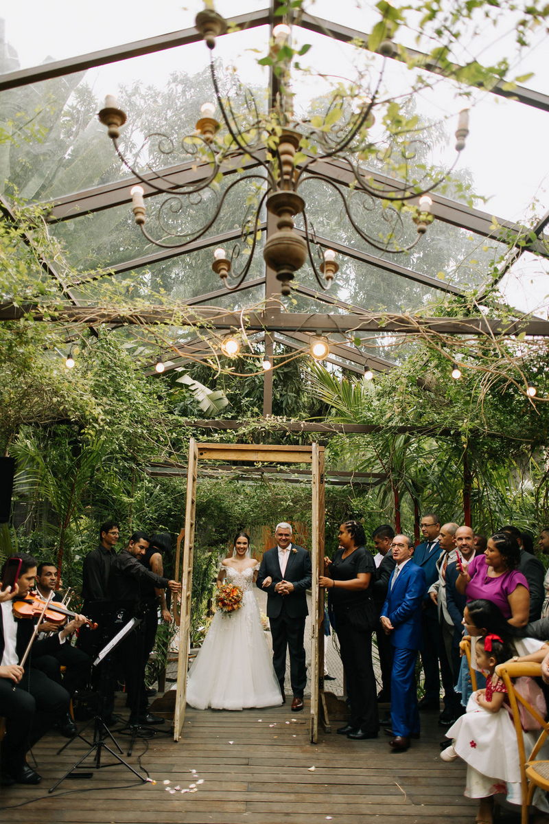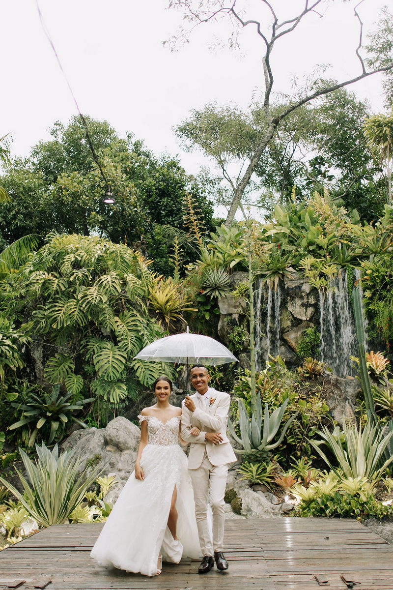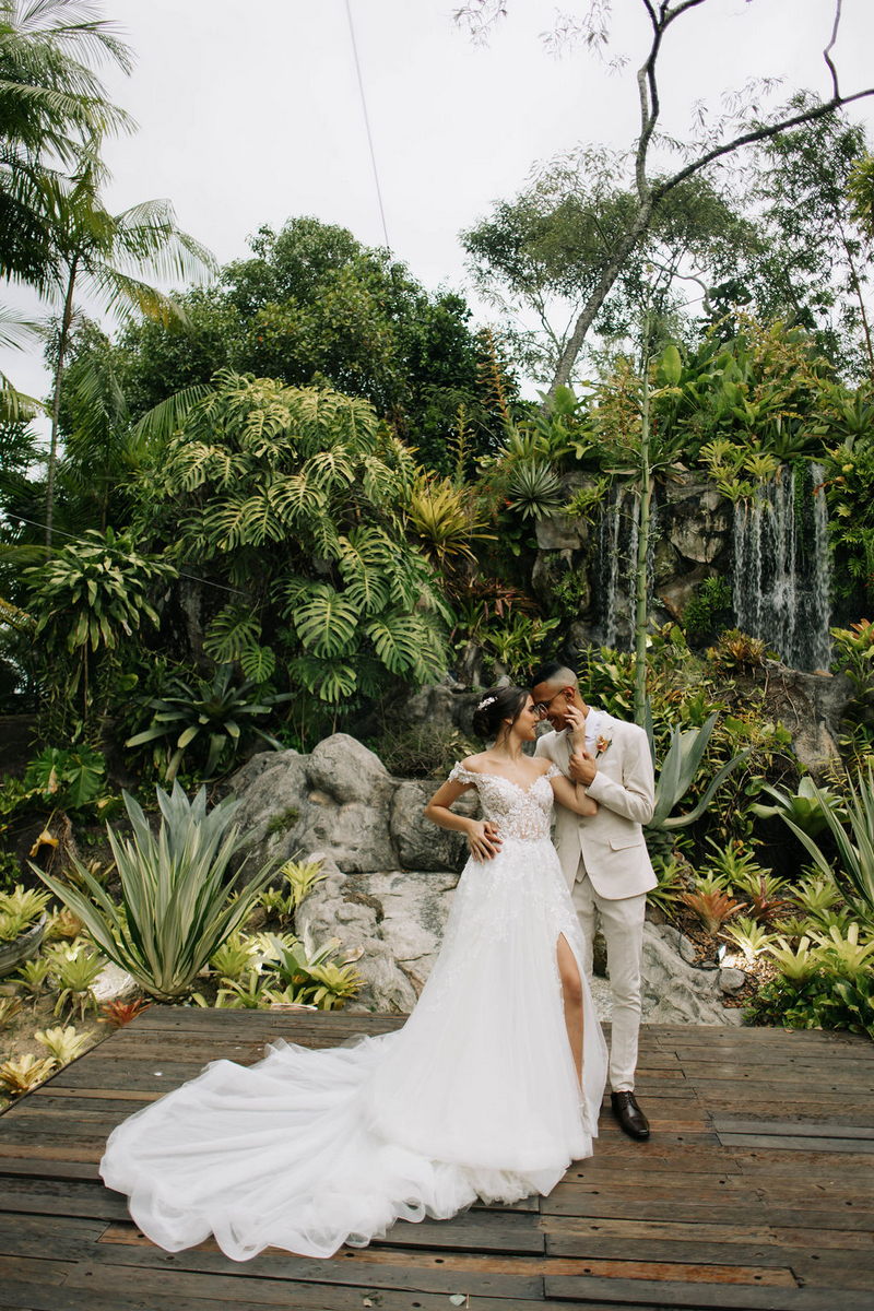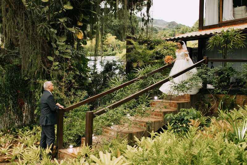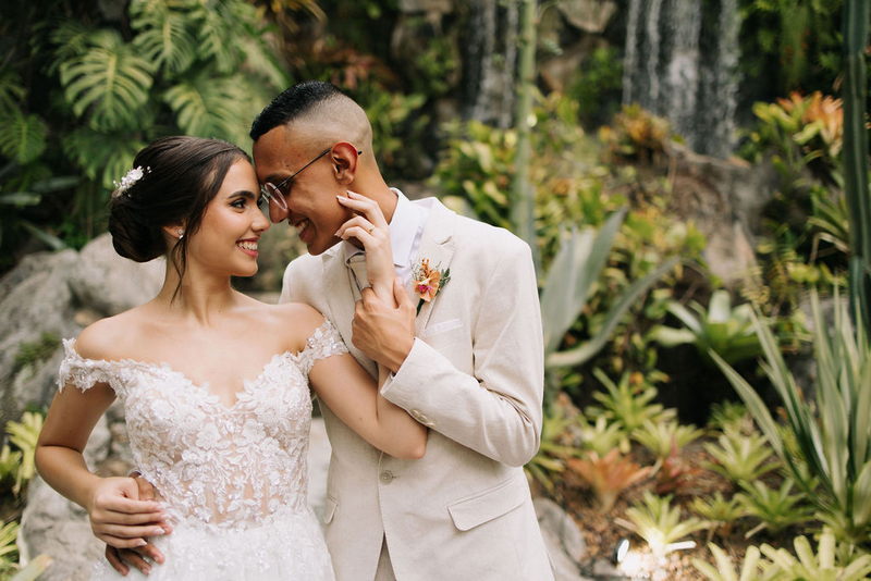 Daniella estava simplesmente deslumbrante em seu vestido de noiva da Internovias. O modelo escolhido foi um verdadeiro espetáculo, o busto transparente adornado por aplicações delicadas, destacaram sua feminilidade e elegância. As mangas bordadas, trouxeram um toque romântico e sofisticado ao visual. A saia volumosa conferiu leveza e movimento ao vestido, enquanto a fenda lateral adicionou um toque moderno, perfeito para uma noiva que deseja unir tradição e contemporaneidade. Para completar o look, o buquê vibrante com flores tropicais, trouxe um contraste alegre e cheio de personalidade.