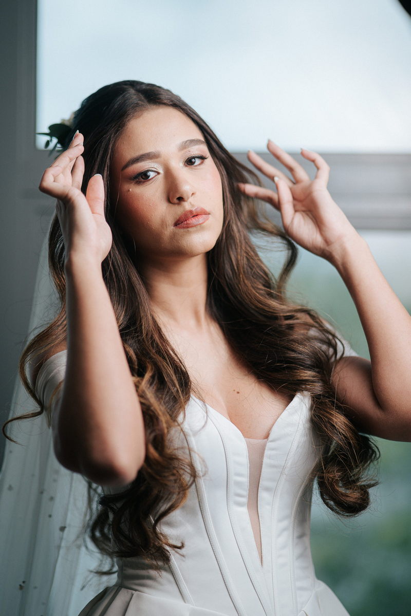 A maquiagem, assinada por @suzanazanini.makeup, realçou sua beleza natural com um look leve e sofisticado. Os traços da noiva foram destacados de forma sutil, criando uma harmonia perfeita com o vestido e o tema do casamento.