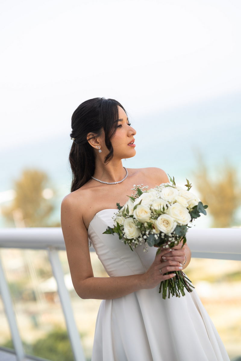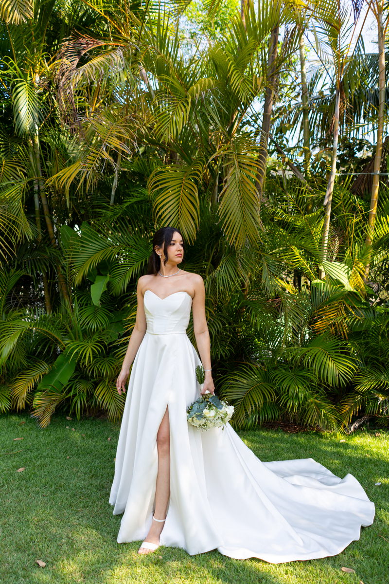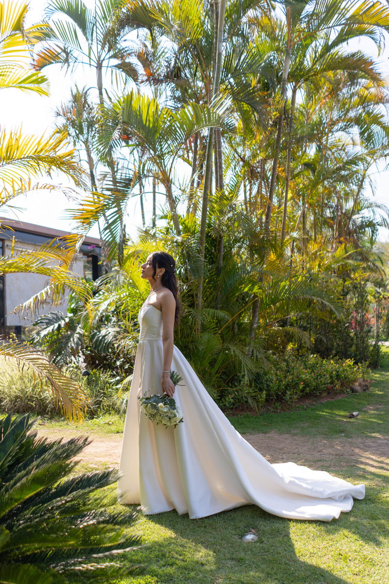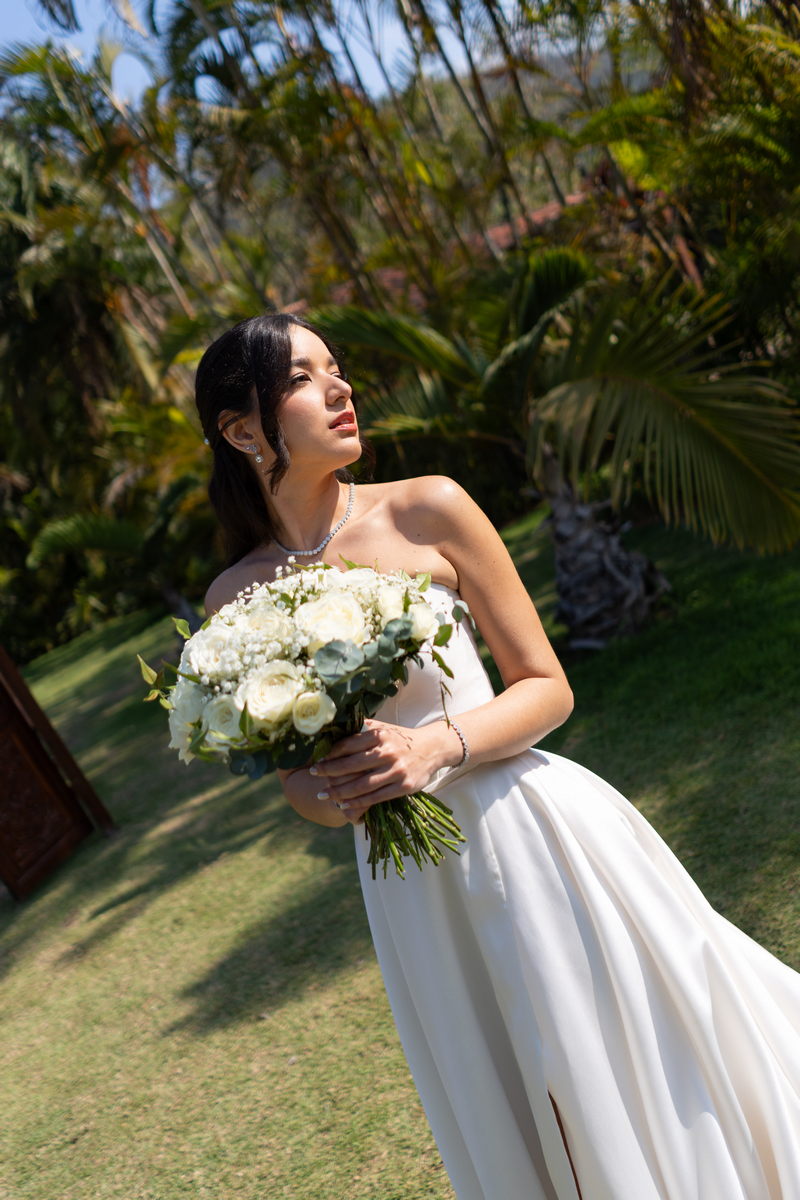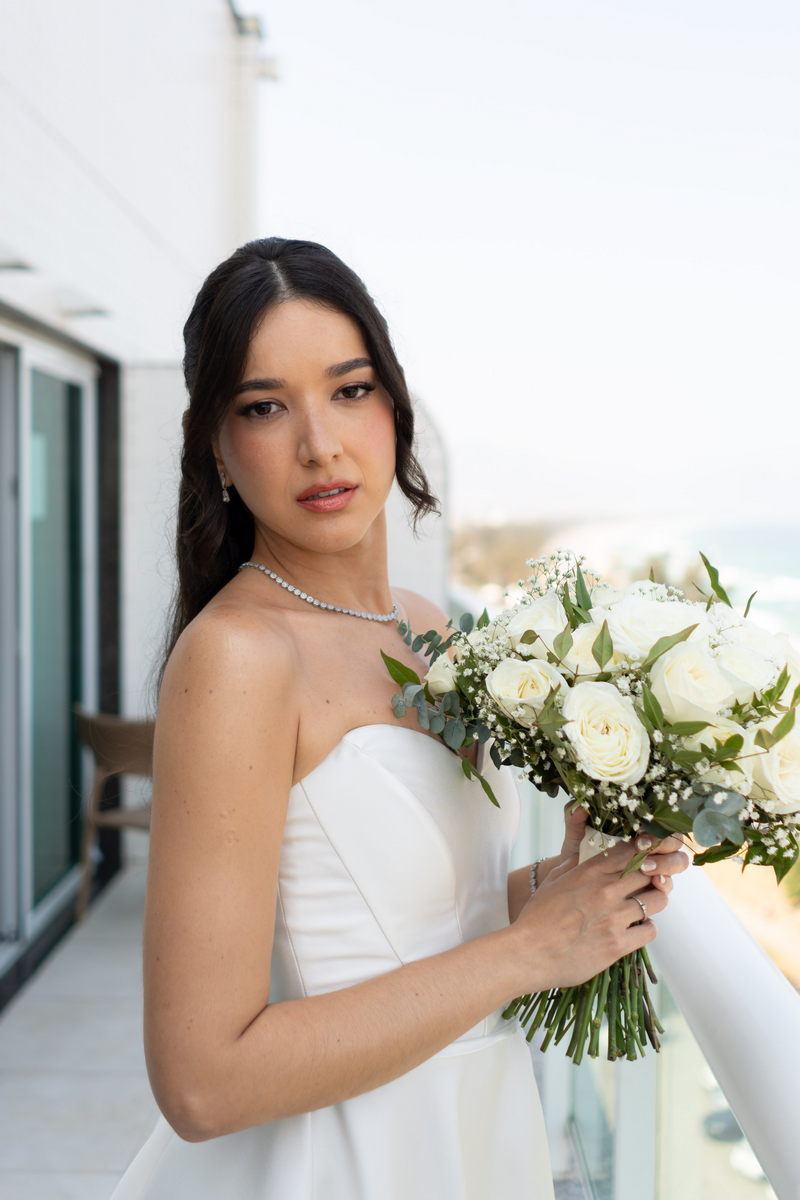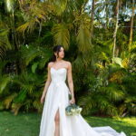 Luisa estava deslumbrante em seu vestido de noiva Internovias! Ela escolheu um modelo que representou perfeitamente a elegância atemporal: uma peça tomara que caia com decote coração, que realçou sua silhueta de maneira impecável. O tecido, delicadamente iluminado pela luz natural, trouxe um brilho sutil e encantador, enquanto a silhueta evasê conferiu um toque clássico e gracioso. O destaque ficou por conta da fenda lateral, que adicionou um ar moderno e sensual ao visual tradicional, e da cauda, que completou o look com uma sofisticação delicada.