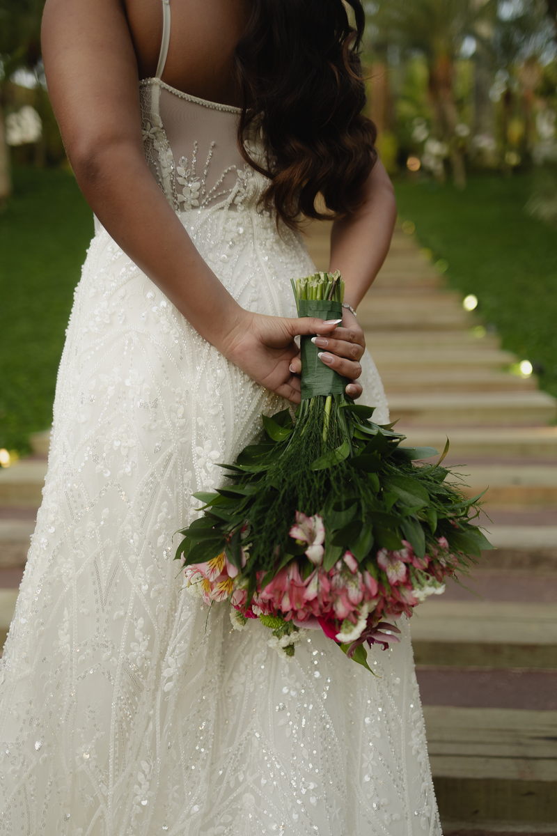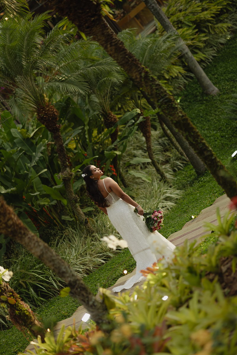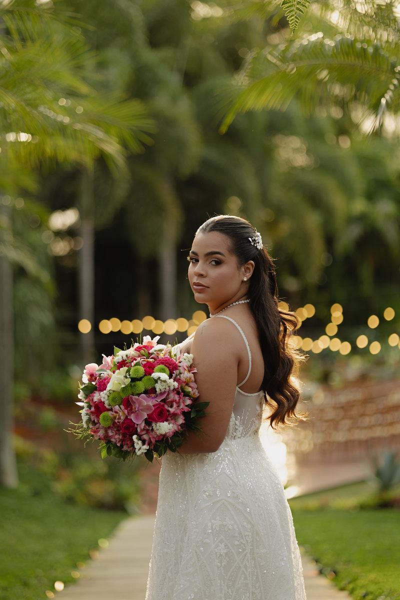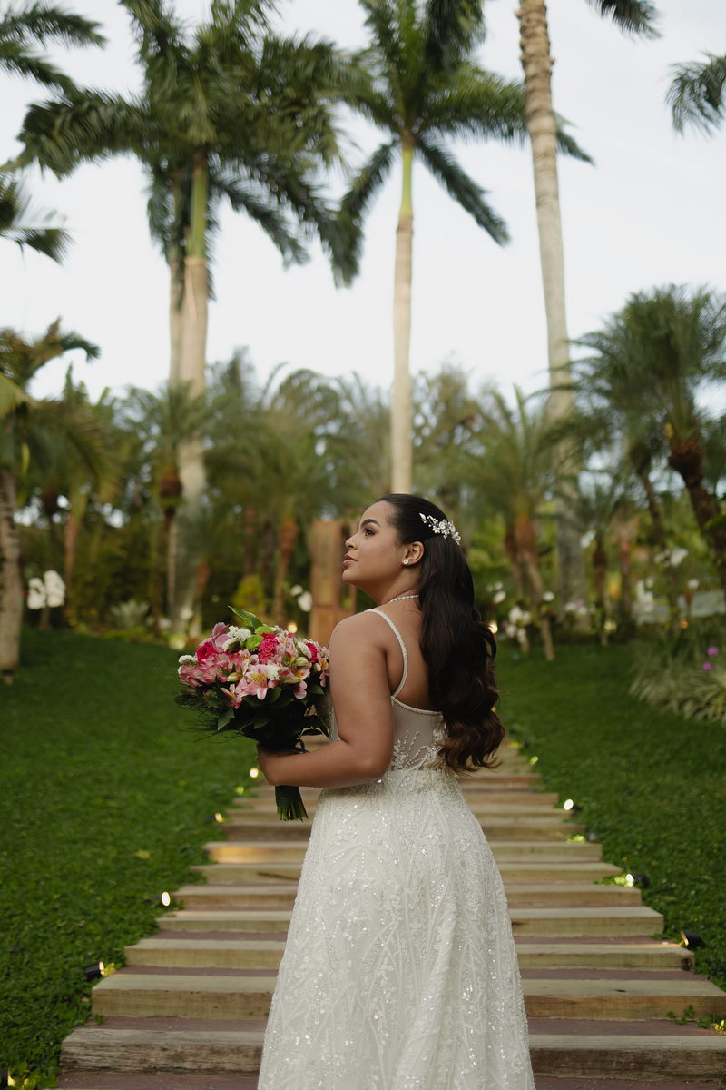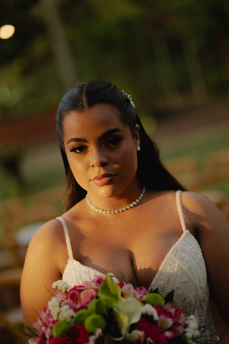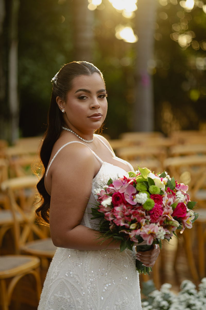 A beleza impecável de Victoria ganhou vida pelas mãos talentosas de @flaviaalexandramakeup, que criou uma maquiagem natural, realçando a luminosidade da noiva sem perder a essência de sua beleza. O resultado foi um visual harmonioso que acompanhou Victoria do início ao fim da celebração com a mesma perfeição.