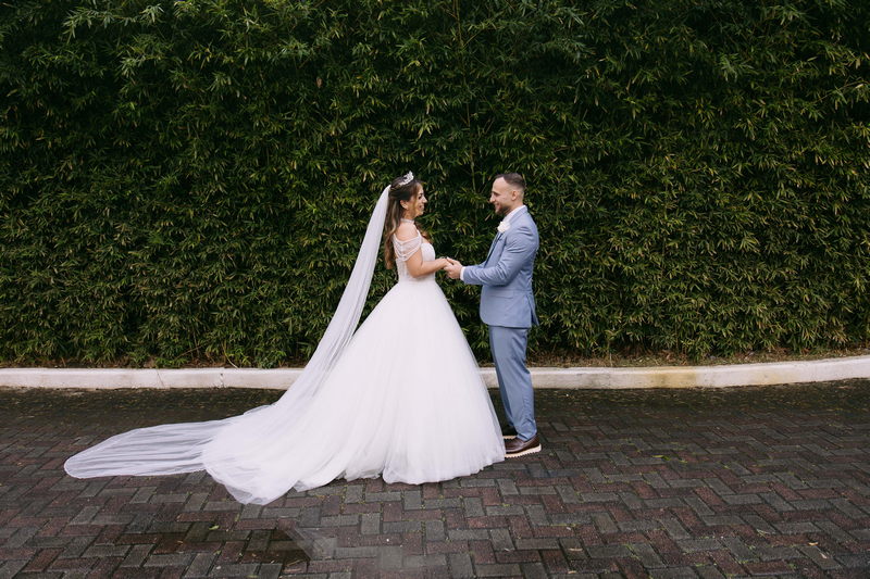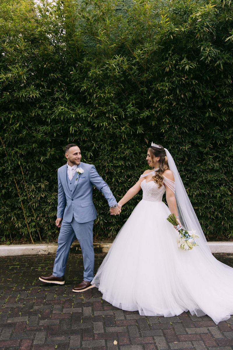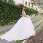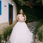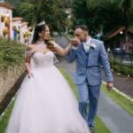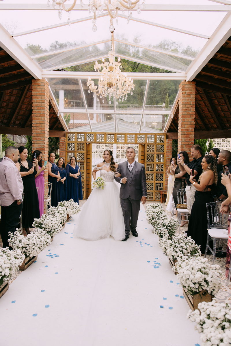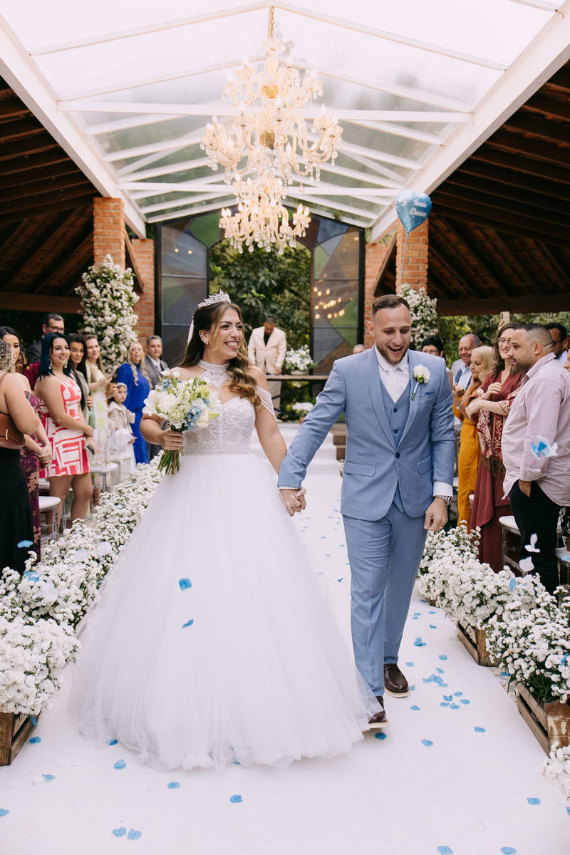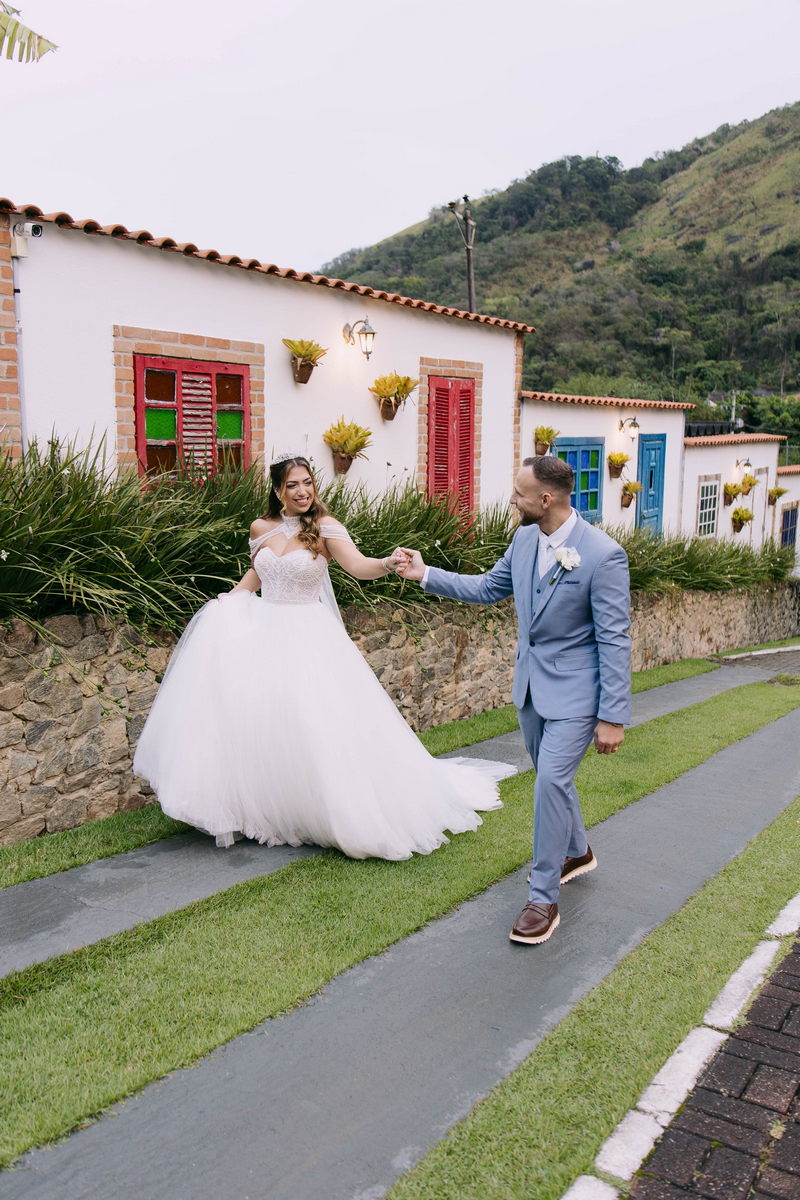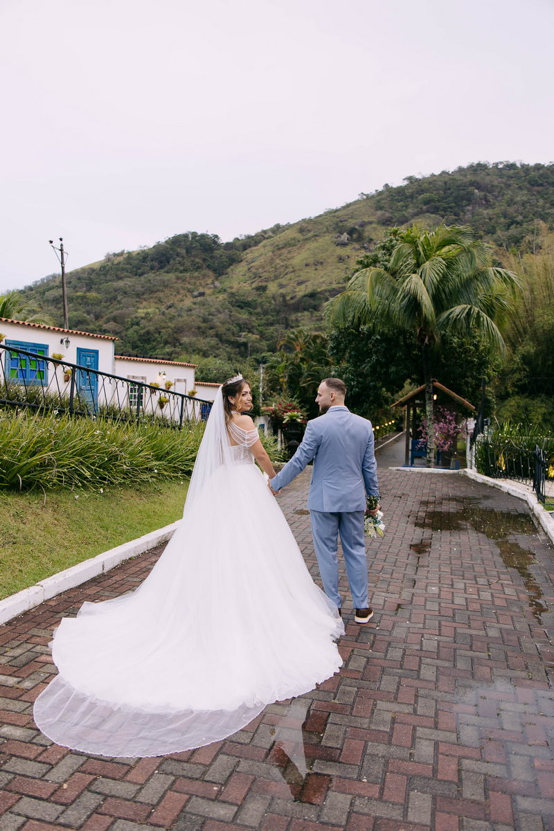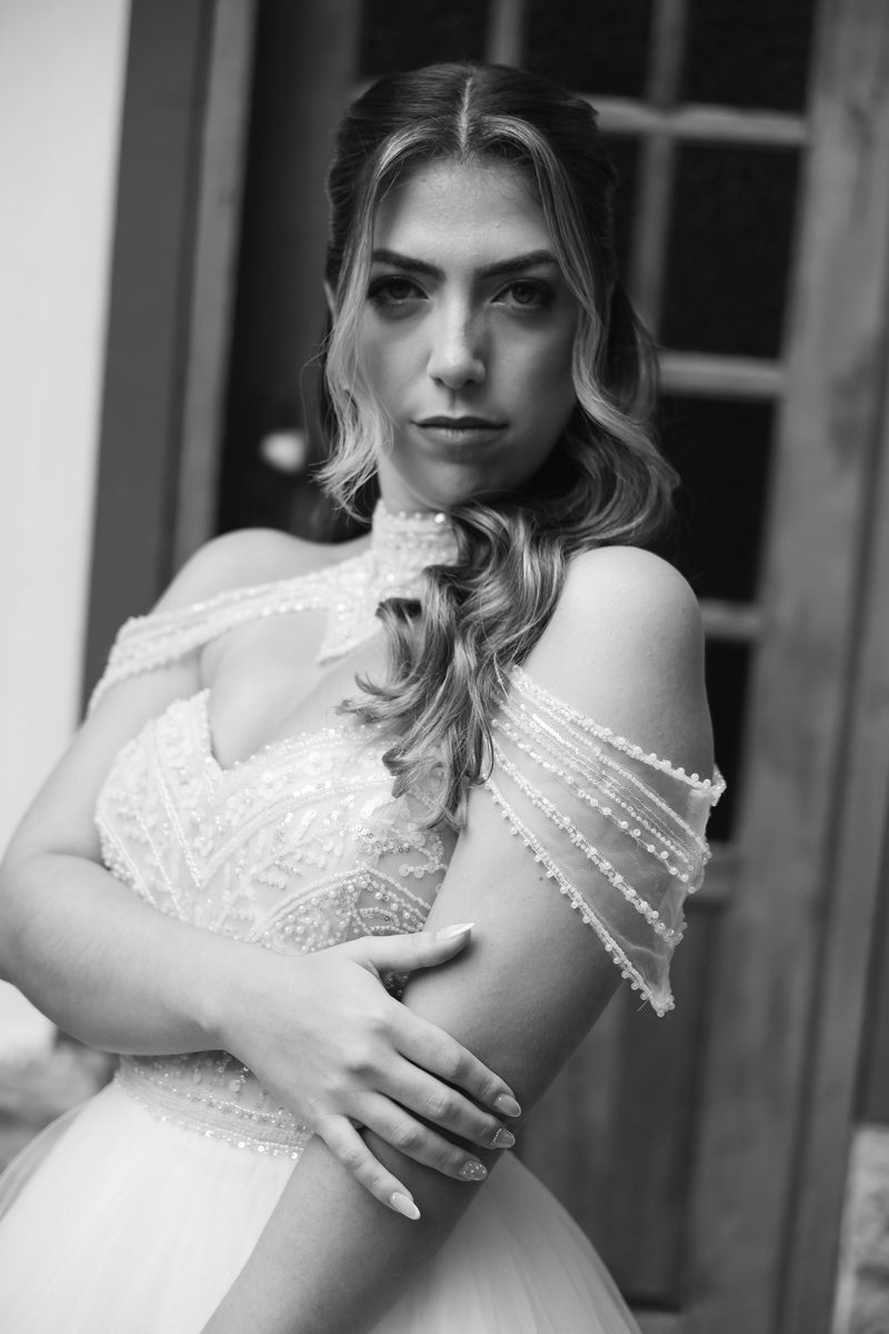 Monike estava simplesmente deslumbrante, sua beleza irradiava serenidade e alegria. Seu vestido de noiva Internovias era uma verdadeira obra de arte, digna de uma princesa. Inspirado no charme da princesa Jasmine da Disney, o modelo estilo princesa apresentava uma saia volumosa em tule, que conferia leveza e movimento etéreo a cada passo. O busto, ricamente adornado com pedrarias cintilantes, capturava a luz de forma delicada, adicionando um toque de glamour e sofisticação. Um detalhe diferenciado nos ombros e no pescoço complementada o vestido com encanto, criando um visual mágico e inesquecível.