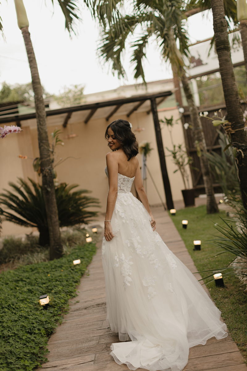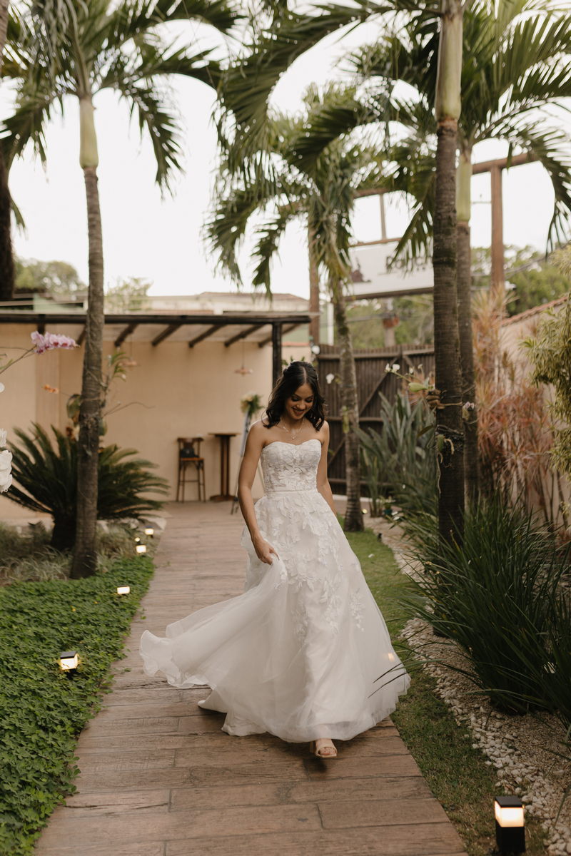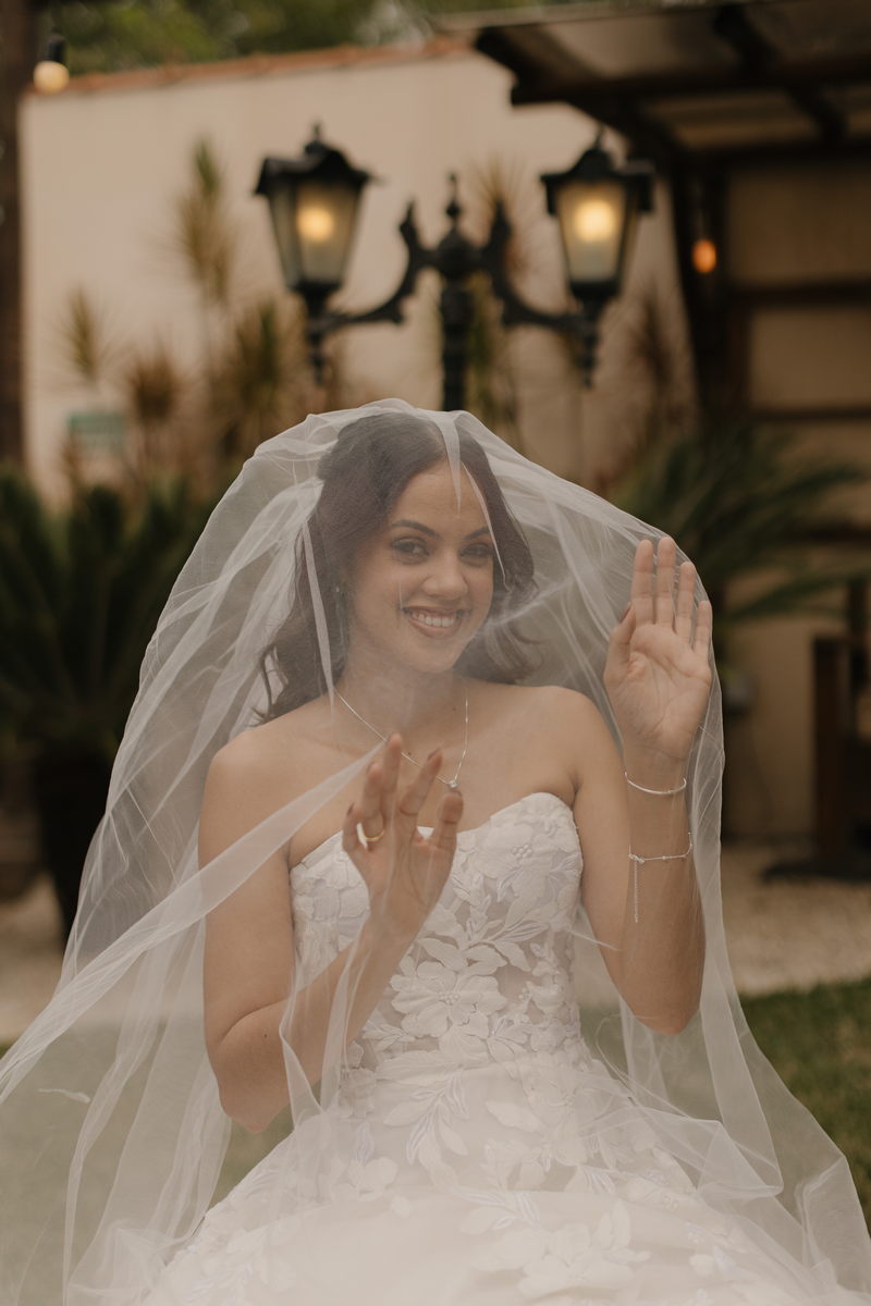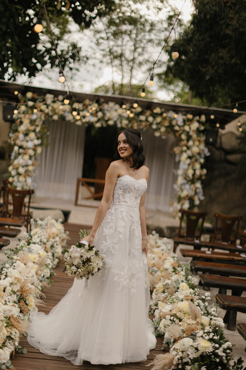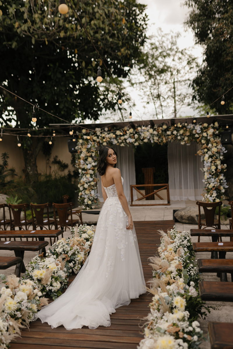 Kathleen encantou a todos com sua beleza e sorriso. O seu vestido de noiva Internovias reforçou ainda mais essa delicadeza, trazendo um equilíbrio perfeito entre romantismo e sofisticação. O modelo evasê estilo sereia destacou sua silhueta com elegância, começando pelo busto todo rendado com detalhes em transparência, continuando pela saia leve com detalhes em rendas belíssimas. Já o tomara que caia com decote em coração moldou o colo com suavidade, mantendo um visual feminino e moderno.