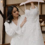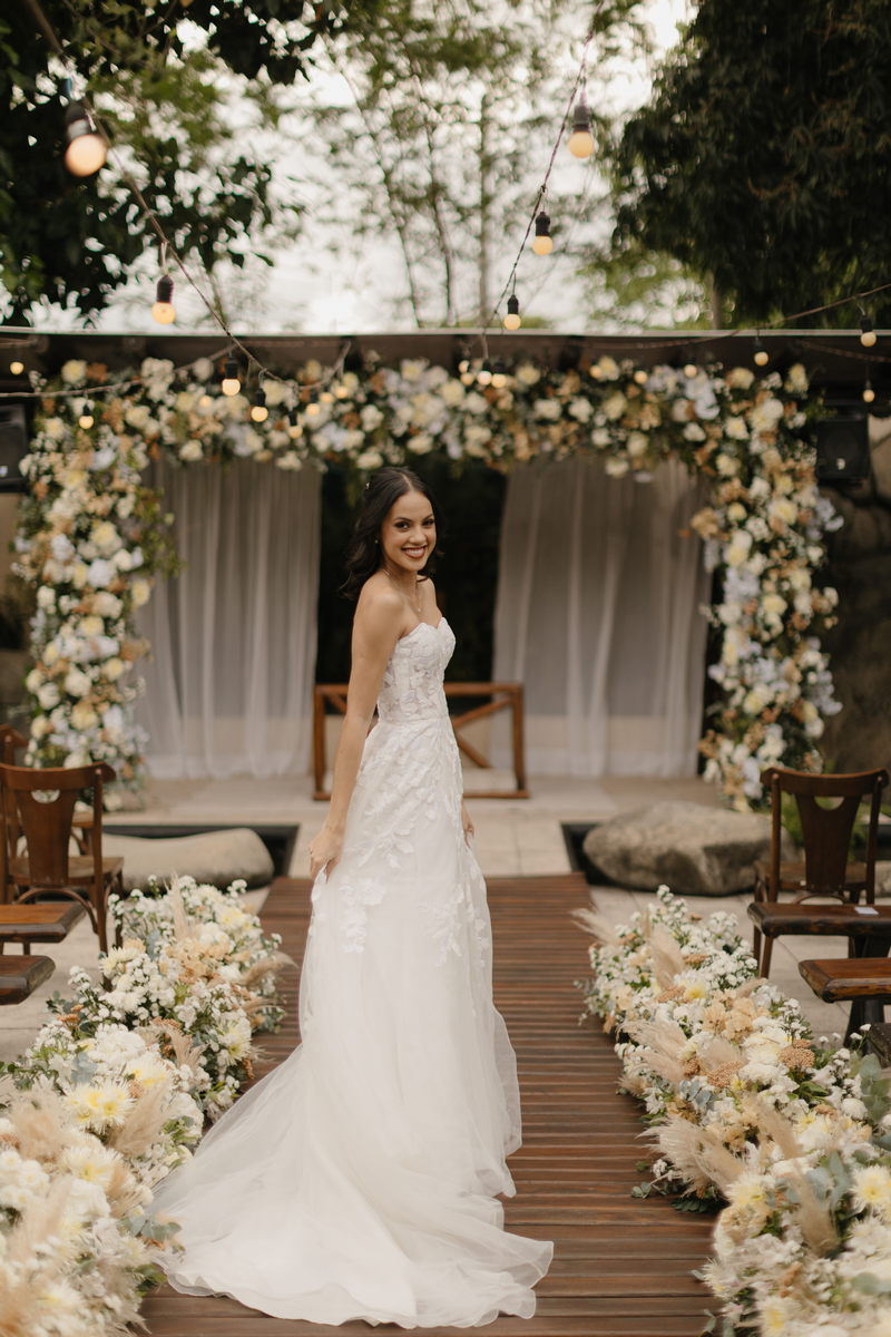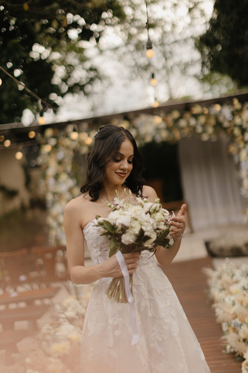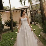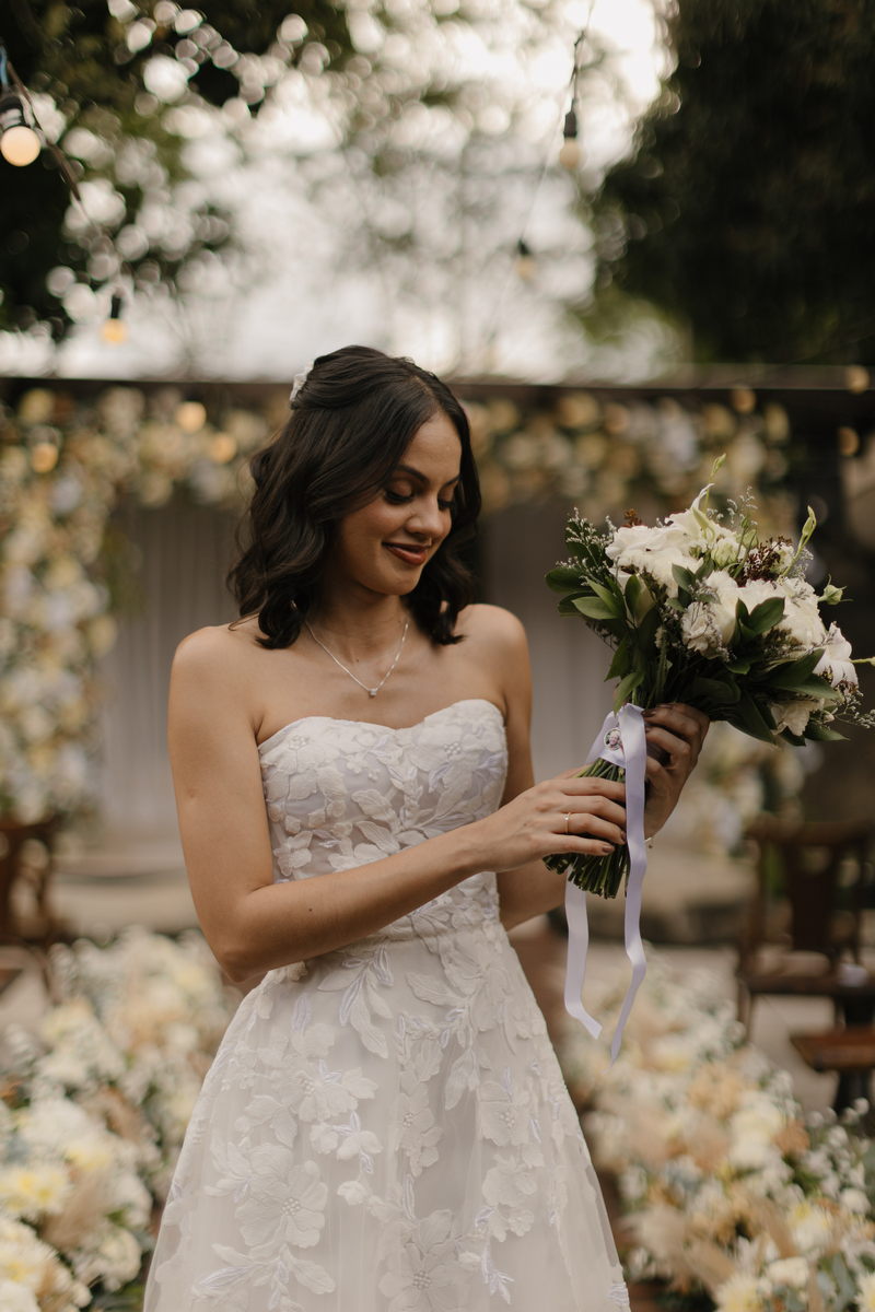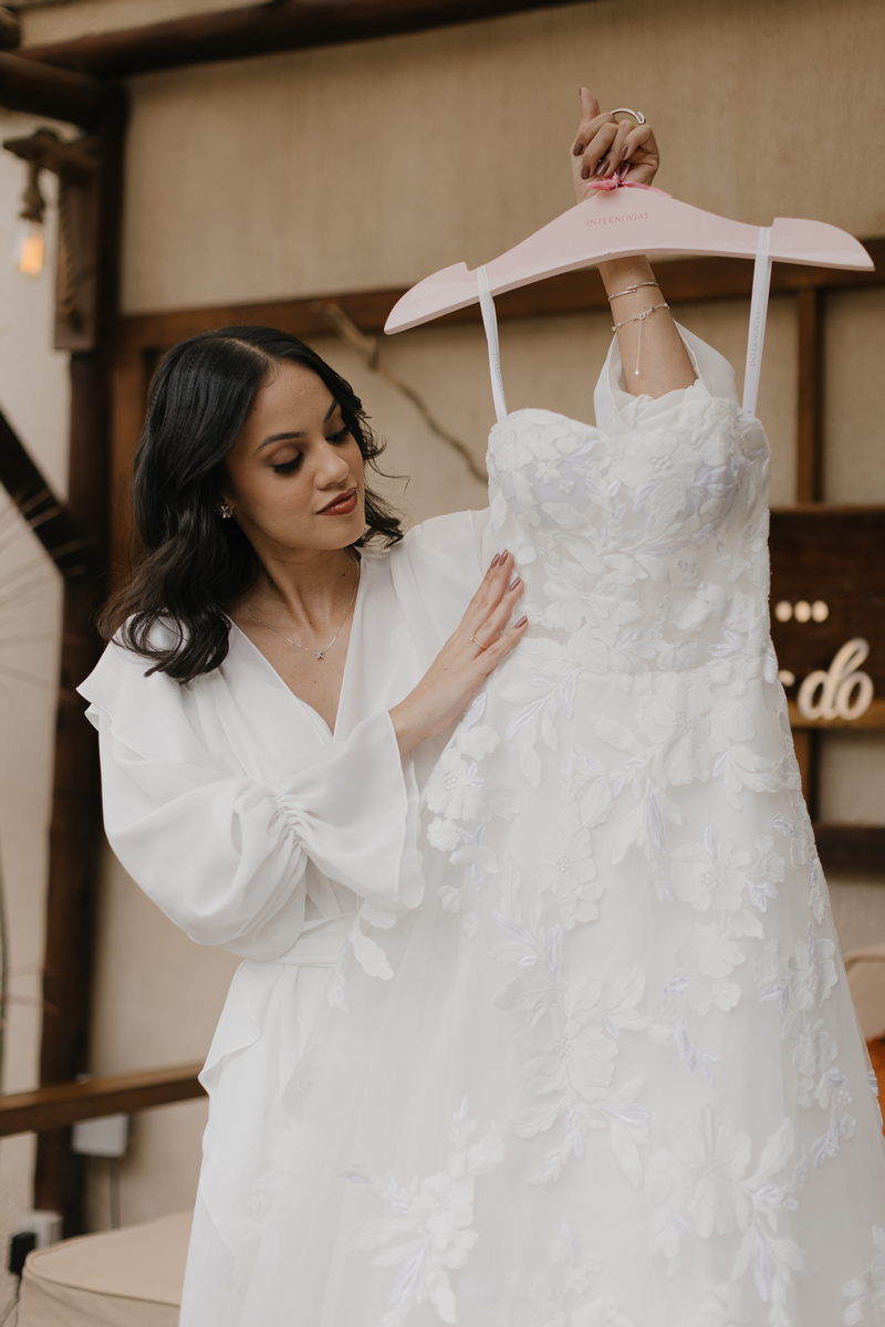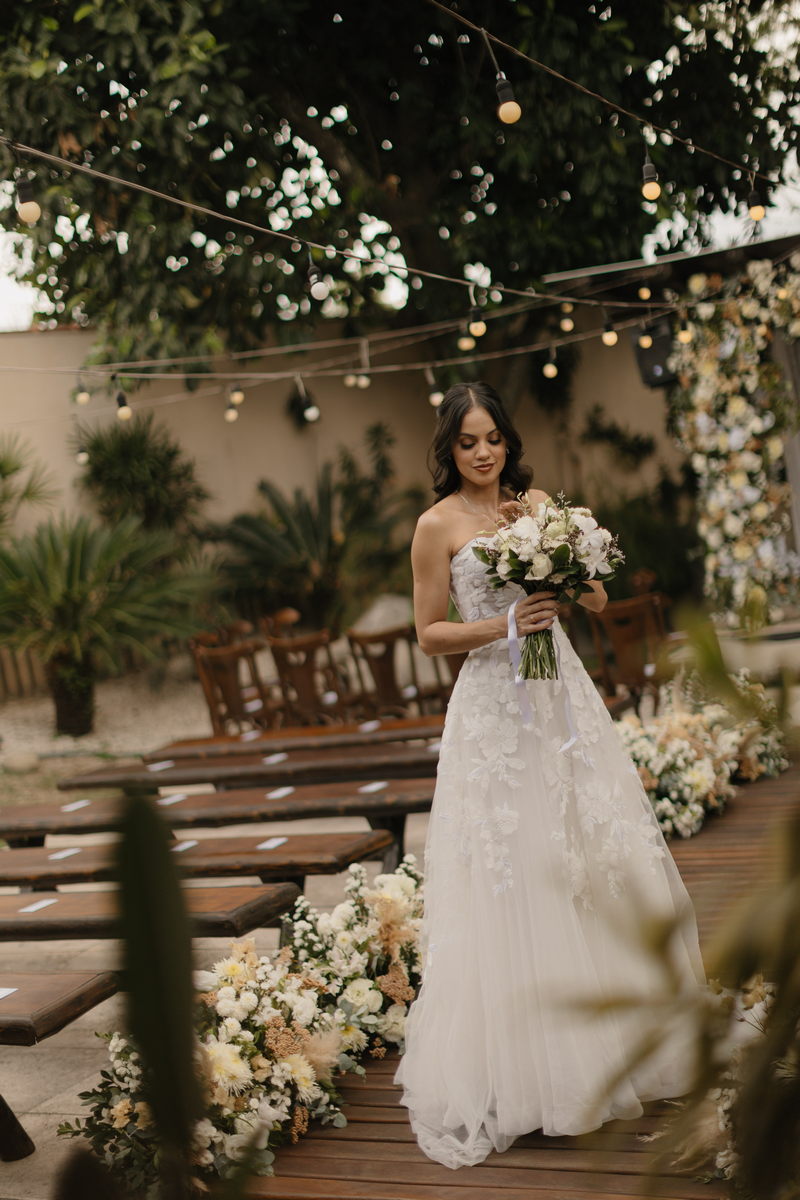 Kathleen encantou a todos com sua beleza e sorriso. O seu vestido de noiva Internovias reforçou ainda mais essa delicadeza, trazendo um equilíbrio perfeito entre romantismo e sofisticação. O modelo evasê estilo sereia destacou sua silhueta com elegância, começando pelo busto todo rendado com detalhes em transparência, continuando pela saia leve com detalhes em rendas belíssimas. Já o tomara que caia com decote em coração moldou o colo com suavidade, mantendo um visual feminino e moderno.