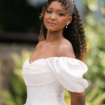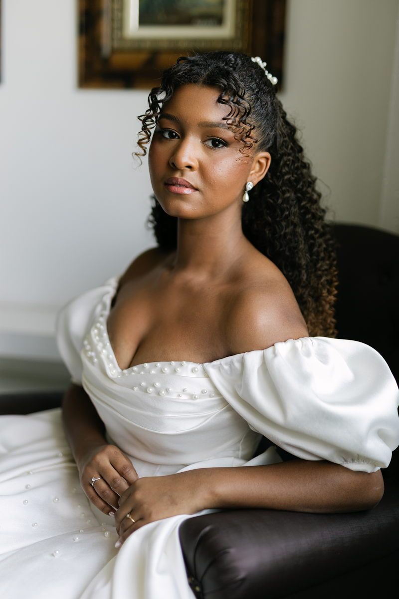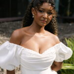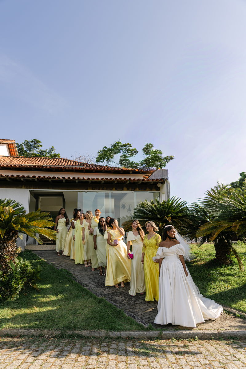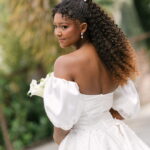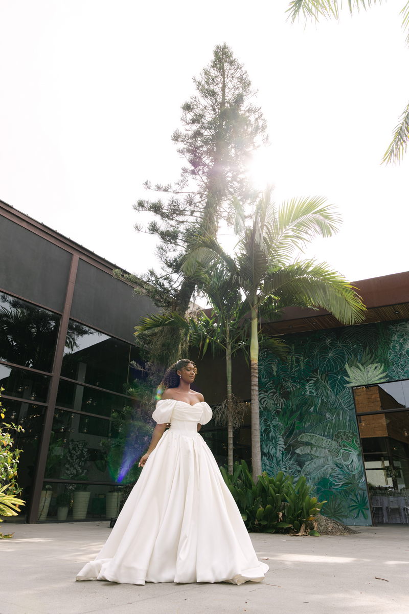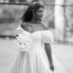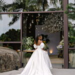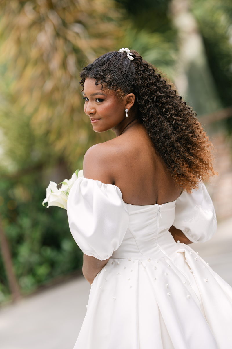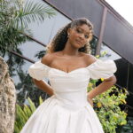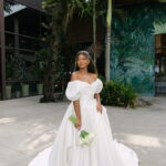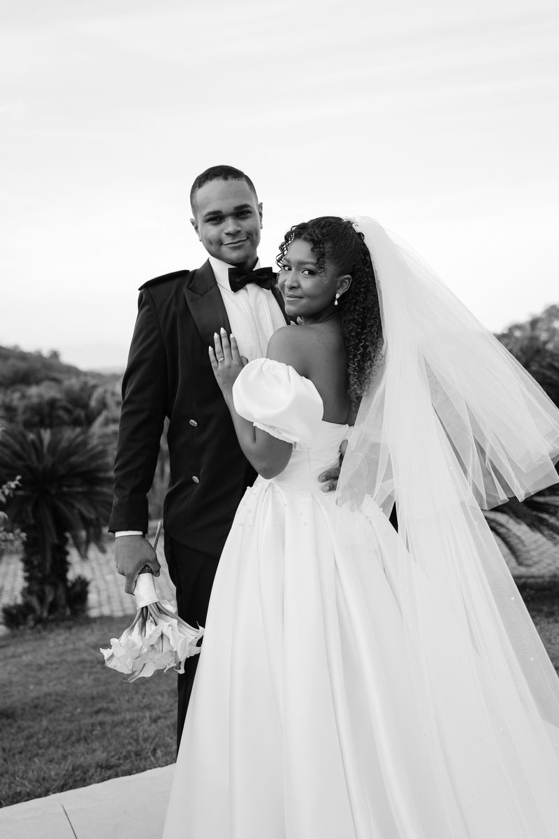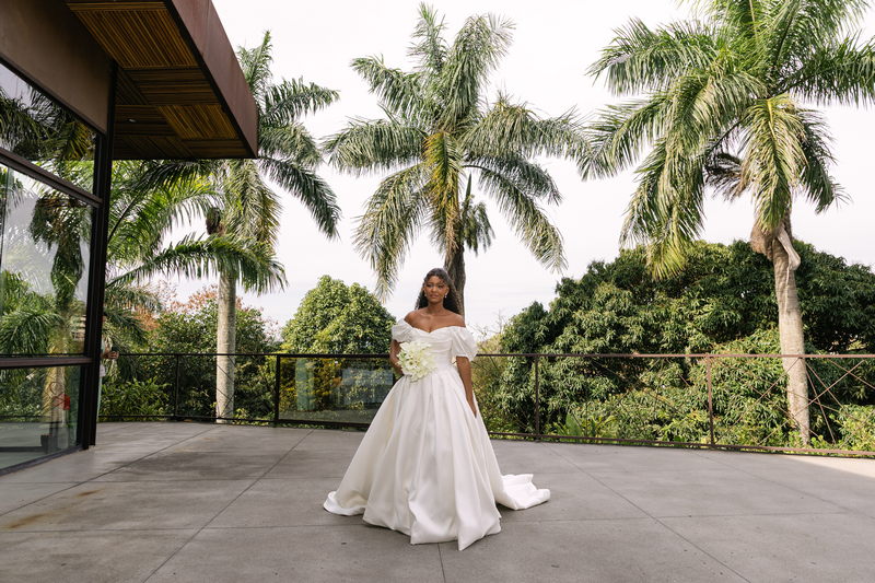 Allice trouxe consigo uma presença marcante, com seu sorriso sereno e beleza incomparável. Seu vestido de noiva Internovias, traduziu com perfeição a personalidade da noiva: romântica, elegante e contemporânea. O modelo princesa com decote ombro a ombro delicado, mangas bufantes curtas conferiram um toque de romantismo clássico sem pesar. O corpete estruturado valorizou a sua silhueta com sutileza, enquanto a saia ampla ganhou vida com pequenas aplicações de pérolas delicadas, permitindo que sua personalidade brilhasse em cada foto.