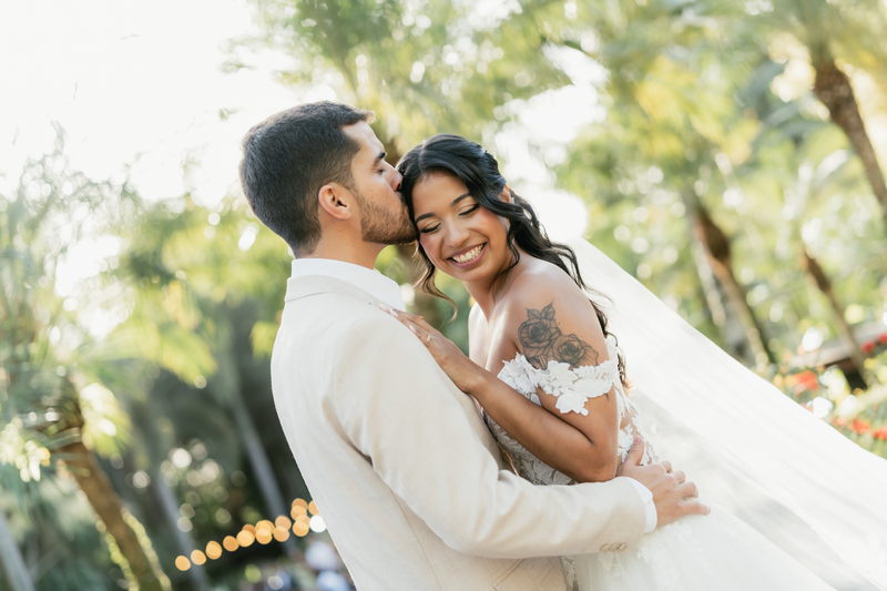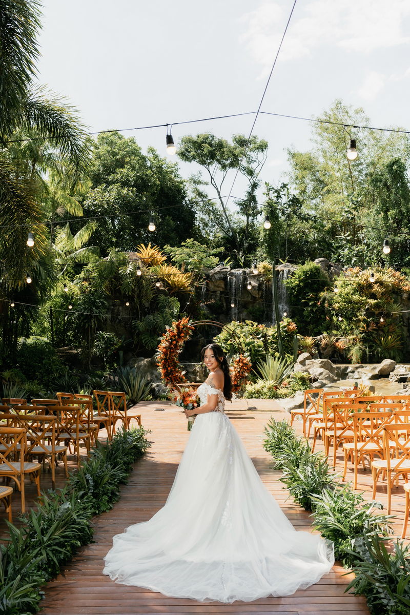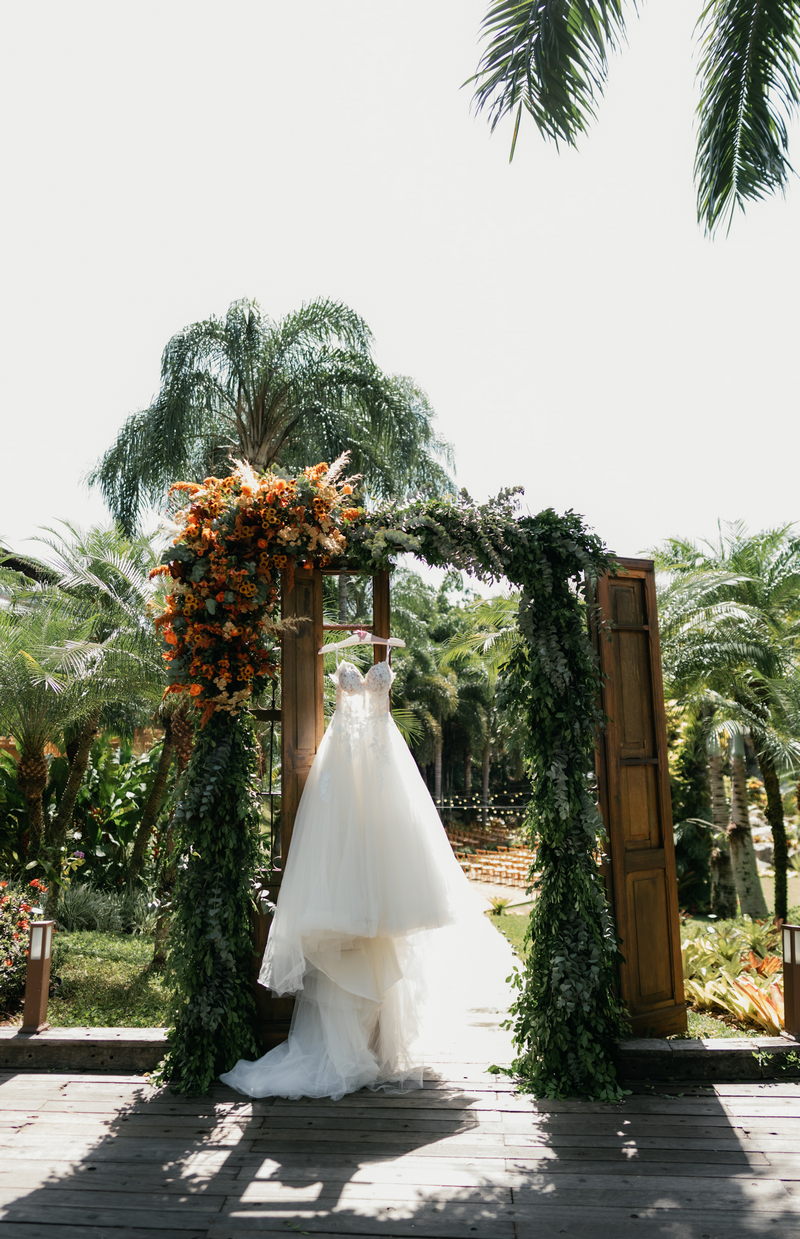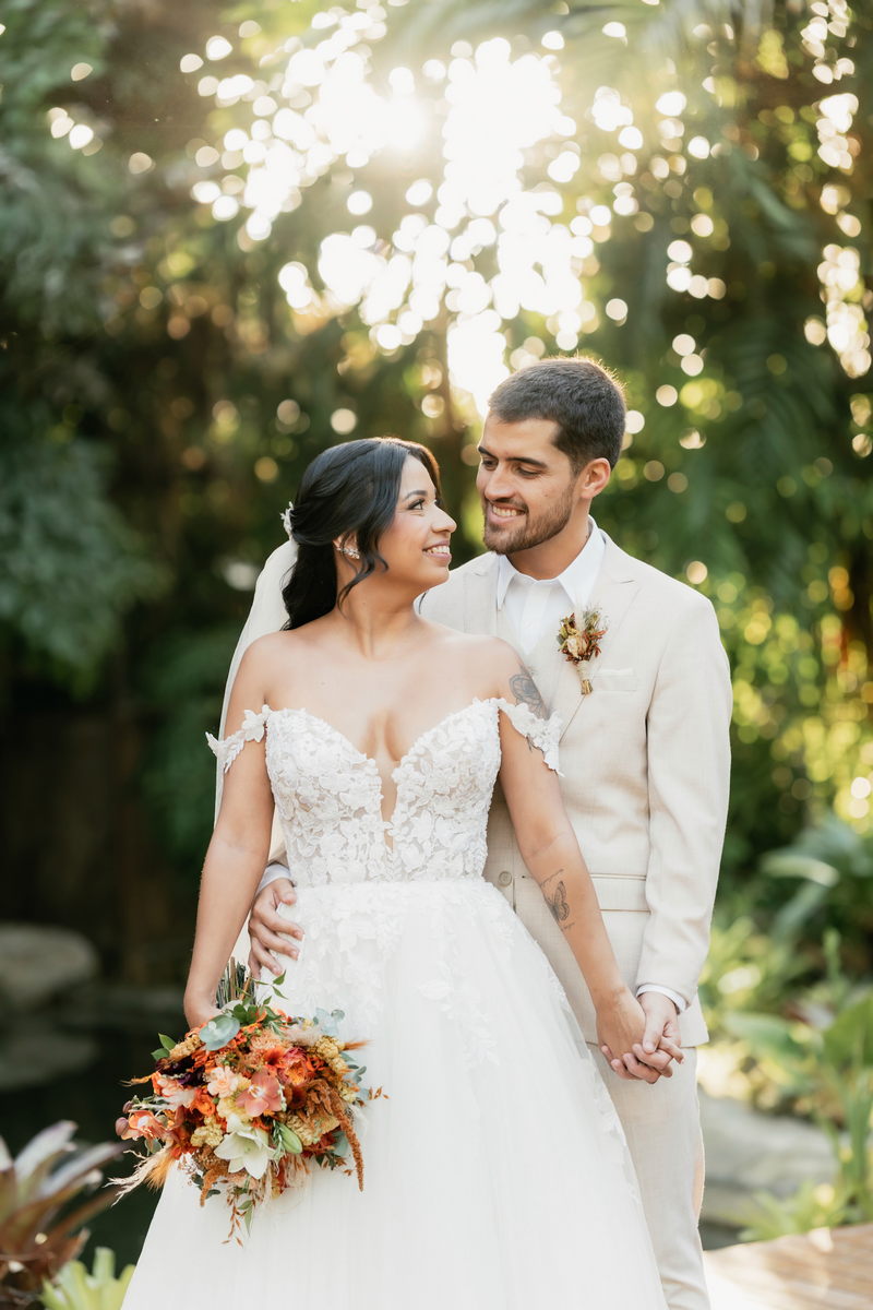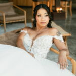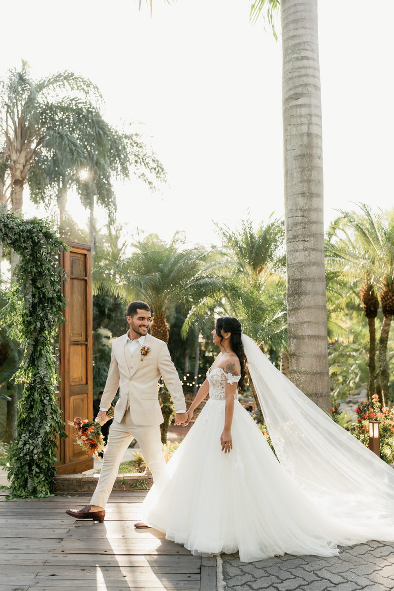 Andressa estava deslumbrante de noiva, sua beleza e felicidade encantaram todos os convidados. O seu vestido de noiva Internovias valorizou sua essência de forma impecável. O modelo, estilo princesa, trazia um caimento volumoso e elegante. O decote ombro a ombro destacava os ombros com suavidade, enquanto a renda floral aplicada no corpete oferecia delicadeza. A saia em camadas de tule criava um movimento leve que deixava o visual ainda mais romântico.