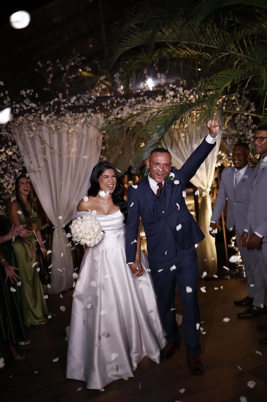 A beleza de Raymara ganhou um toque extra com o trabalho de @karinarousseq, que apostou em uma maquiagem leve, pele iluminada e cabelos soltos com ondas naturais. O resultado foi uma noiva sofisticada, mas sem perder a naturalidade.