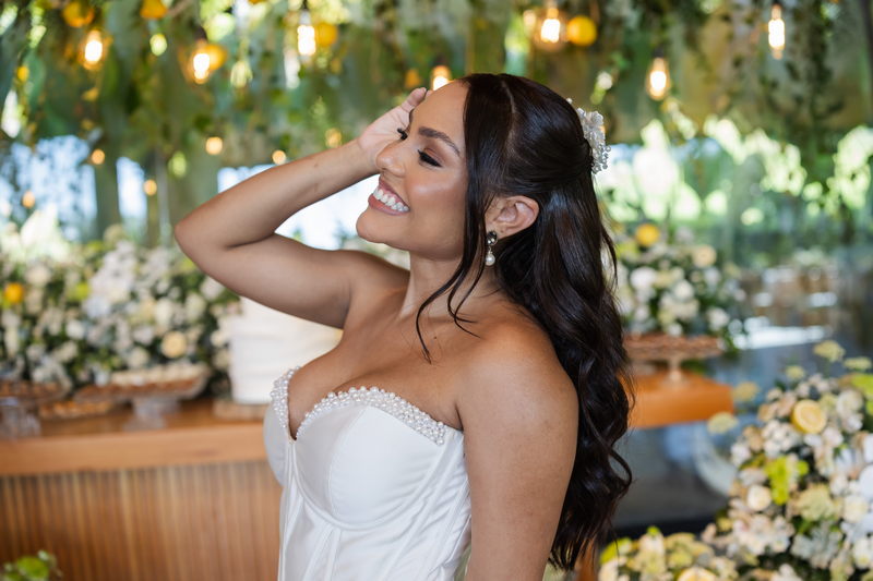 A produção de beleza assinada por @lunasilvamakeup trouxe exatamente o que o dia pedia: pele iluminada, olhar marcante na medida certa e frescor para acompanhar o clima ensolarado do Vale Lagos. O resultado foi uma maquiagem que respeitou o estilo da Joyce e destacou ainda mais seu sorriso.