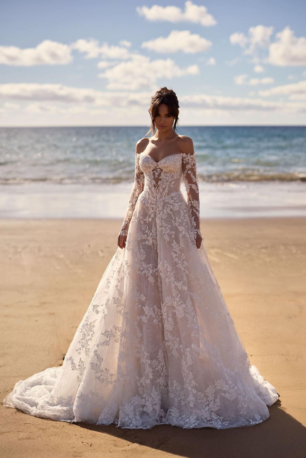 As rendas, sempre icônicas no universo Internovias, aparecem em desenhos sofisticados, revelando texturas que contam histórias e realçam a feminilidade. Já os modelos minimalistas impressionam pela pureza das linhas e pela força da simplicidade bem executada, entregando vestidos que brilham pela autenticidade e pelo caimento impecável.