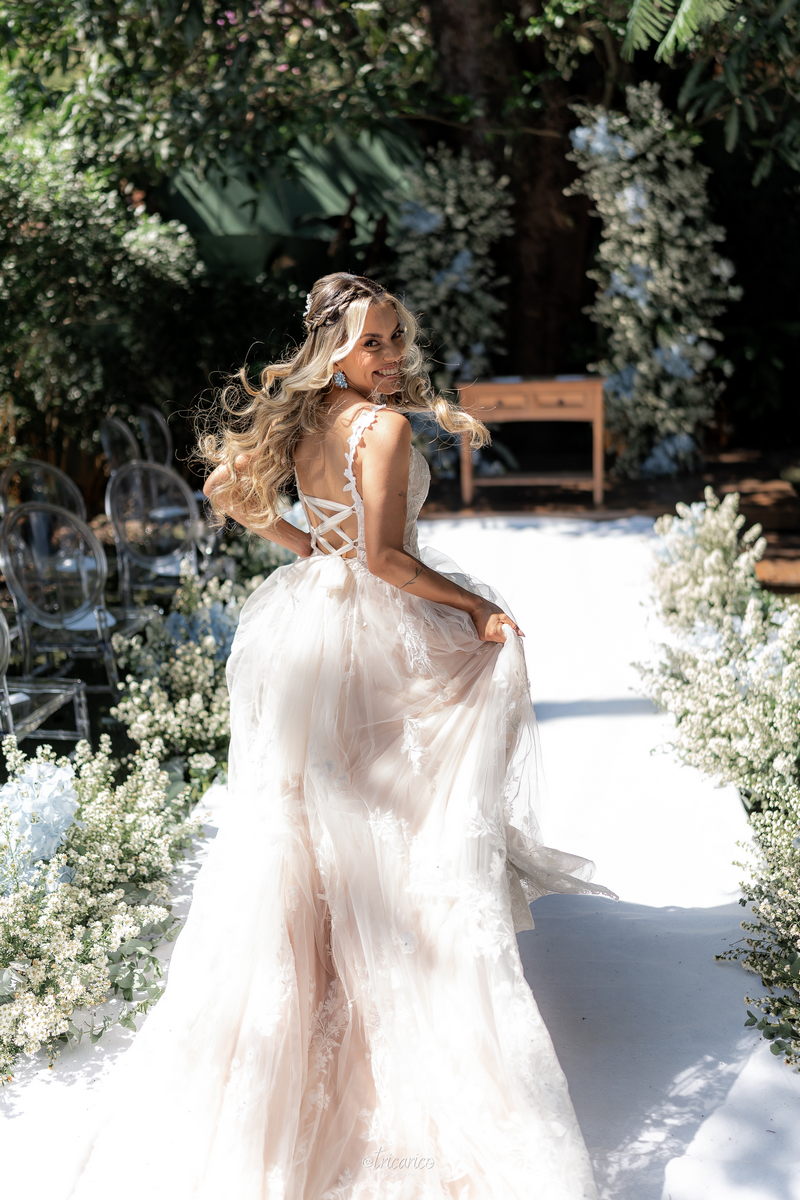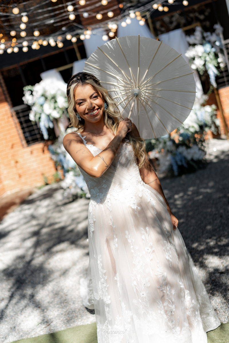 A beleza da noiva ganhou ainda mais destaque com o trabalho de @annajuliamt, que apostou em uma maquiagem leve e um cabelo delicado. A organização do dia ficou aos cuidados de @sttylus.assessoria, que manteve tudo fluindo com naturalidade, permitindo que o casal aproveitasse cada etapa sem preocupação. E os registros sensíveis de @tricaricofotografia revelam exatamente o espírito do evento: luz, movimento e naturalidade, com enquadramentos que destacaram tanto a emoção quanto o amor do casal.