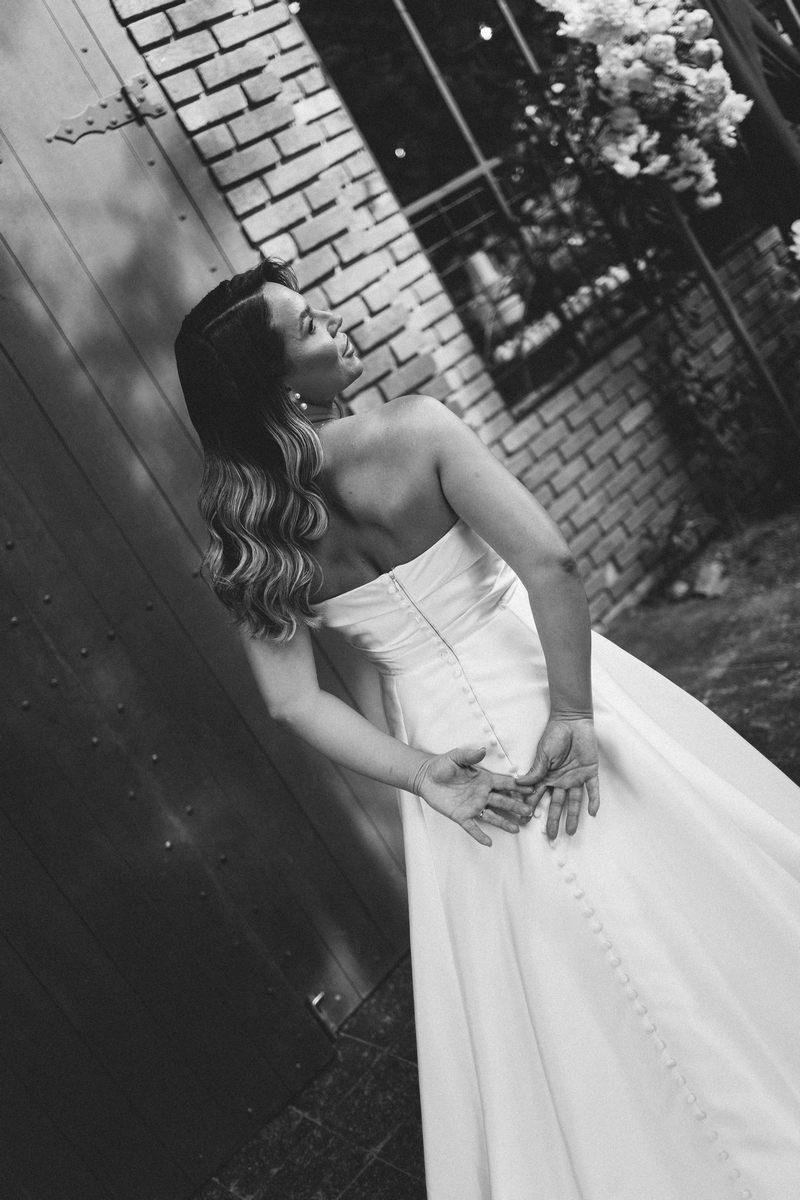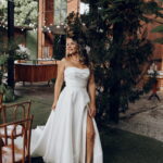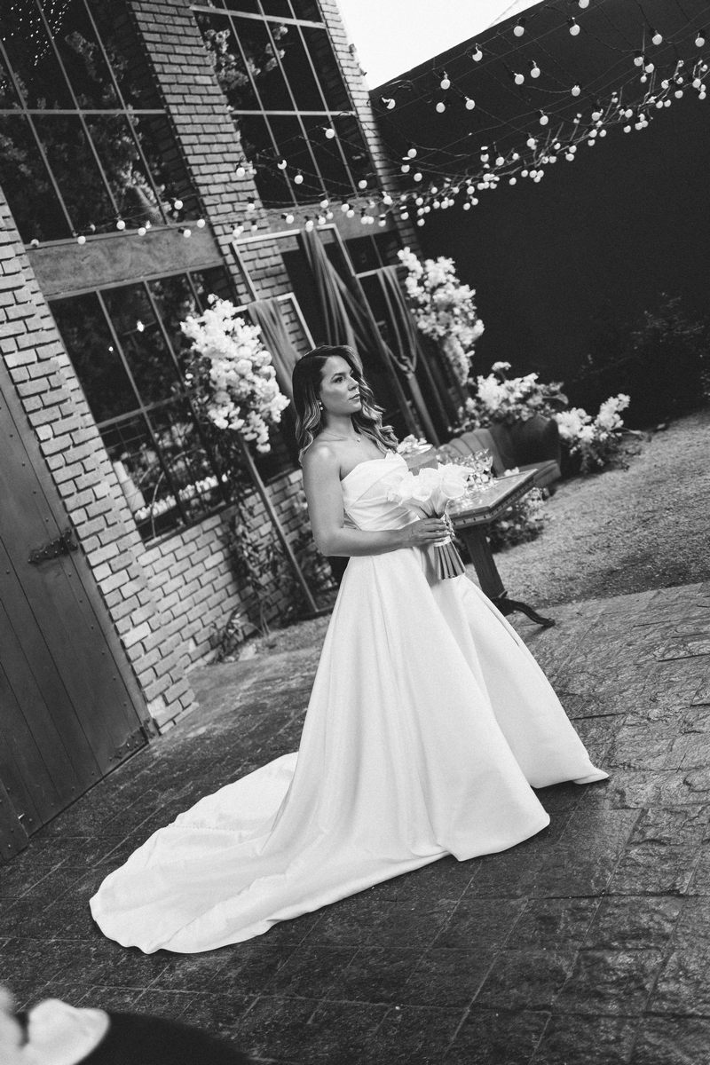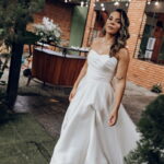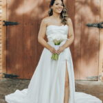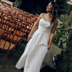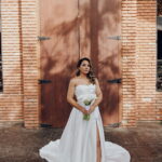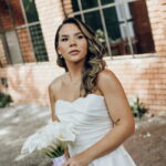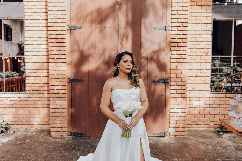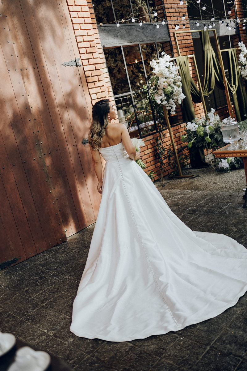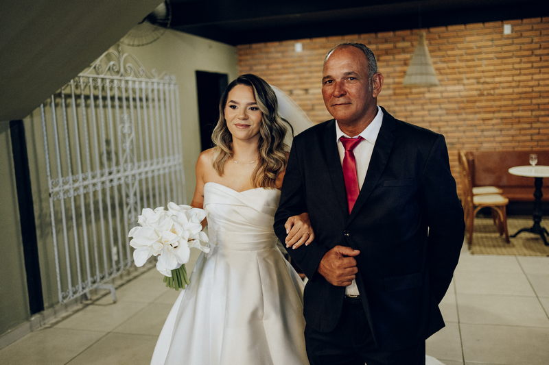 Isabelle era a verdadeira estrela do dia, com sua beleza sem igual. O seu vestido de noiva Internovias potencializou essa beleza com perfeição. O modelo, com acabamento impecável, apresentava decote tomara que caia com drapeado suave. A modelagem A-line, estruturada no corpo e fluindo com leveza até a saia volumosa, valorizou a silhueta da noiva com equilíbrio entre movimento e presença. A abertura frontal acrescentou modernidade e deixou o caminhar mais fluido, revelando discretamente os sapatos e reforçando a personalidade do look.