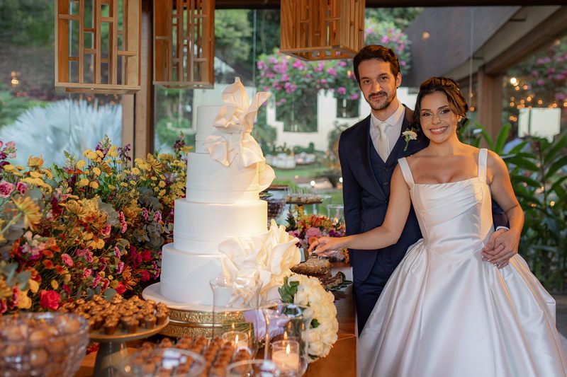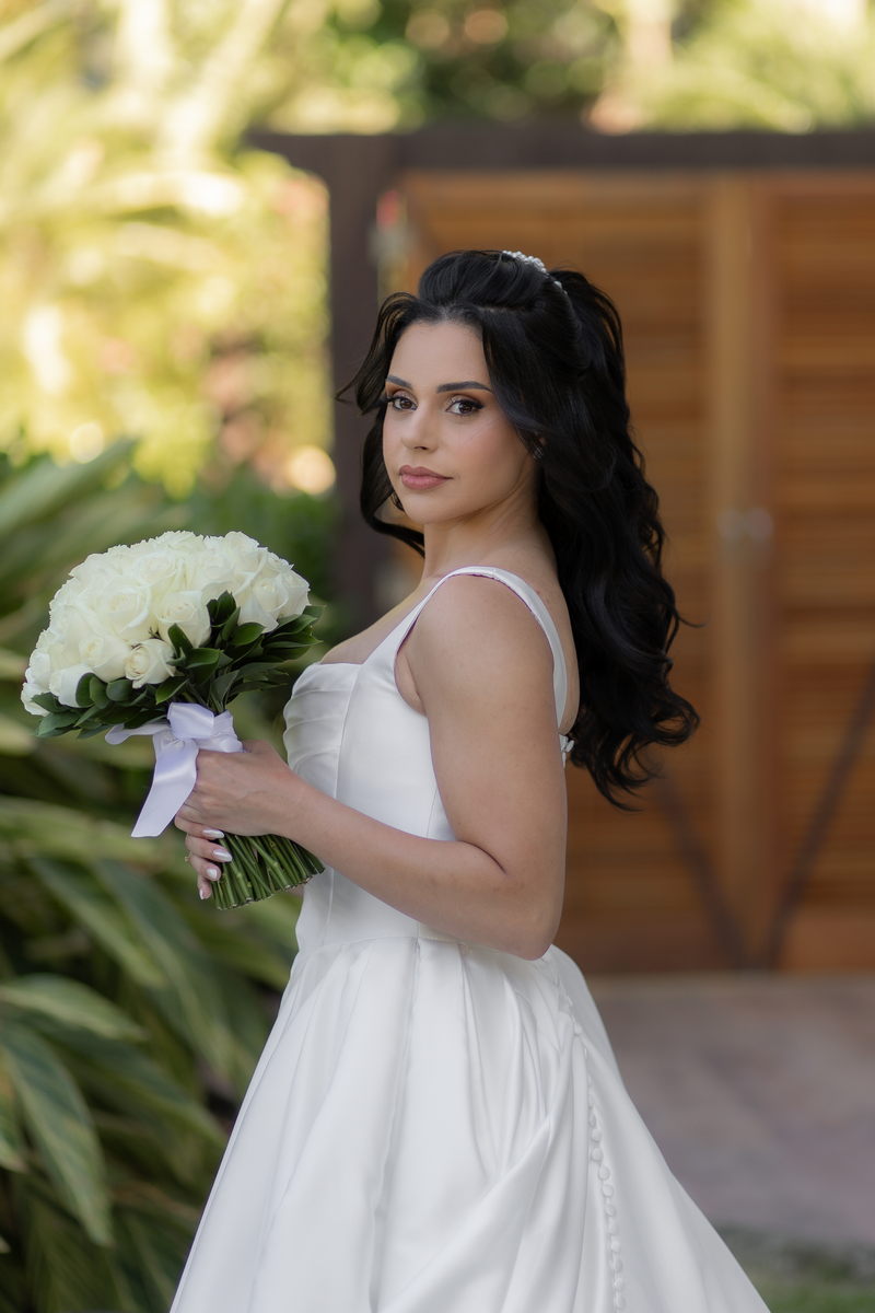A beleza de Andressa ganhou ainda mais destaque com a maquiagem leve e bem iluminada de @brunaguimaraesbeauty, que escolheu um visual que evidenciava as características da noiva, destacando seu olhar e mantendo a naturalidade que o dia pedia.