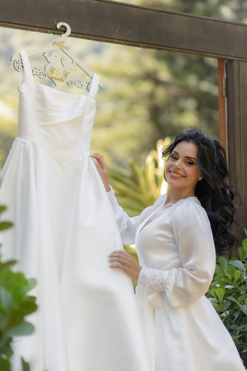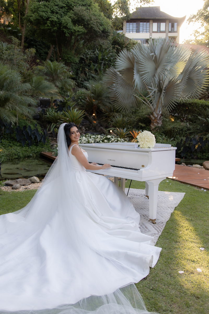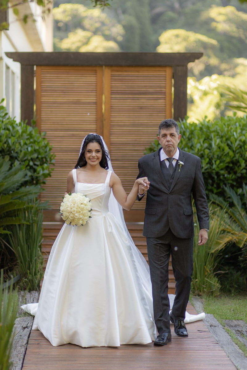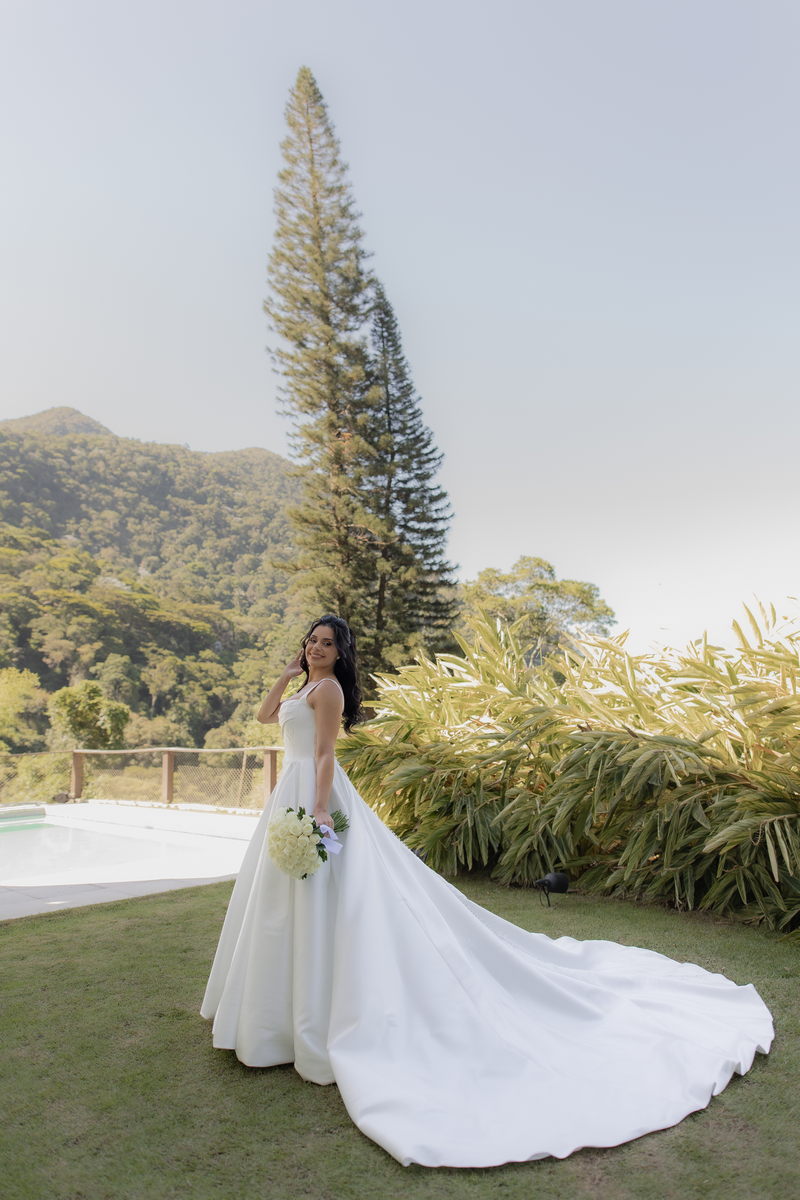As imagens, registradas pela talentosa @agathapinheirofotografia, trazem enquadramentos sensíveis e um uso inteligente da luz do sol. Cada clique evidencia o vestido, a expressão da noiva e a atmosfera envolvente da Casa do Alto. Sem deixar passar nenhum momento desse dia perfeito.